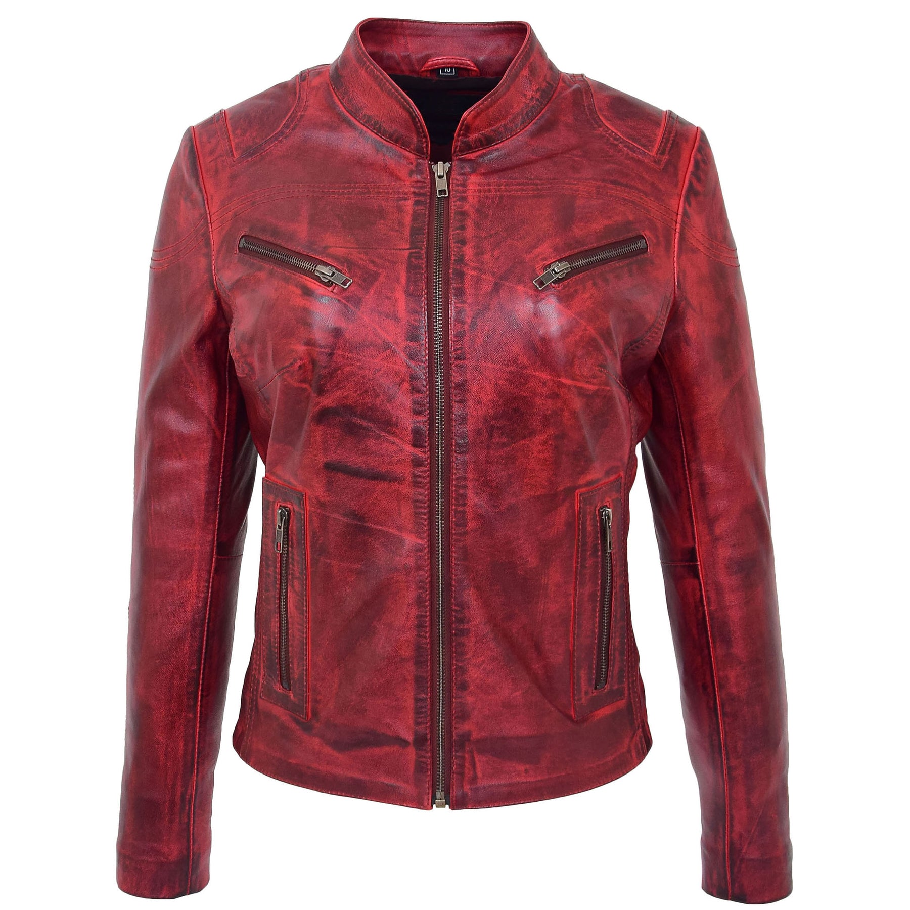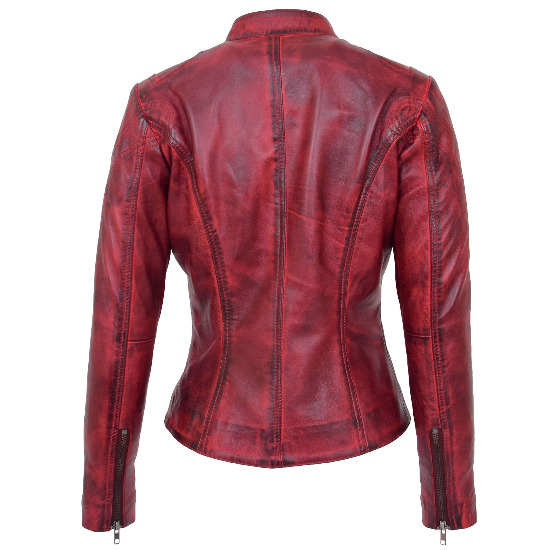 Womens Leather Standing Collar Jacket Becky Burnt Red
