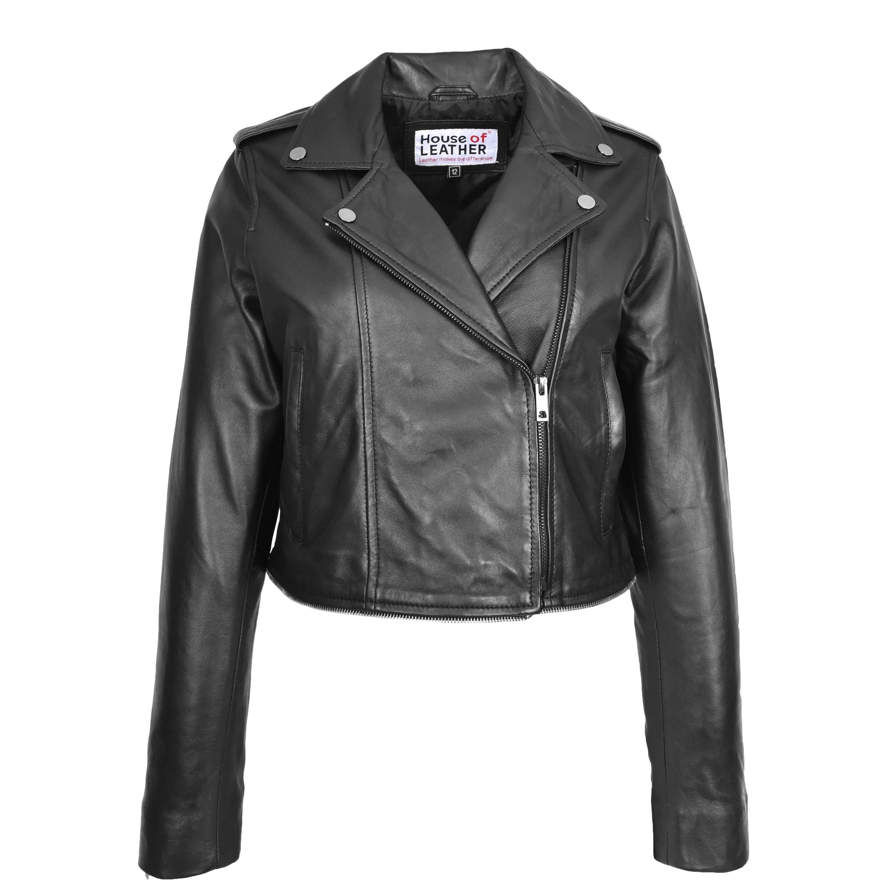 Womens Real Leather Biker Jacket 2-in-1 Cropped Style Bianca Black
