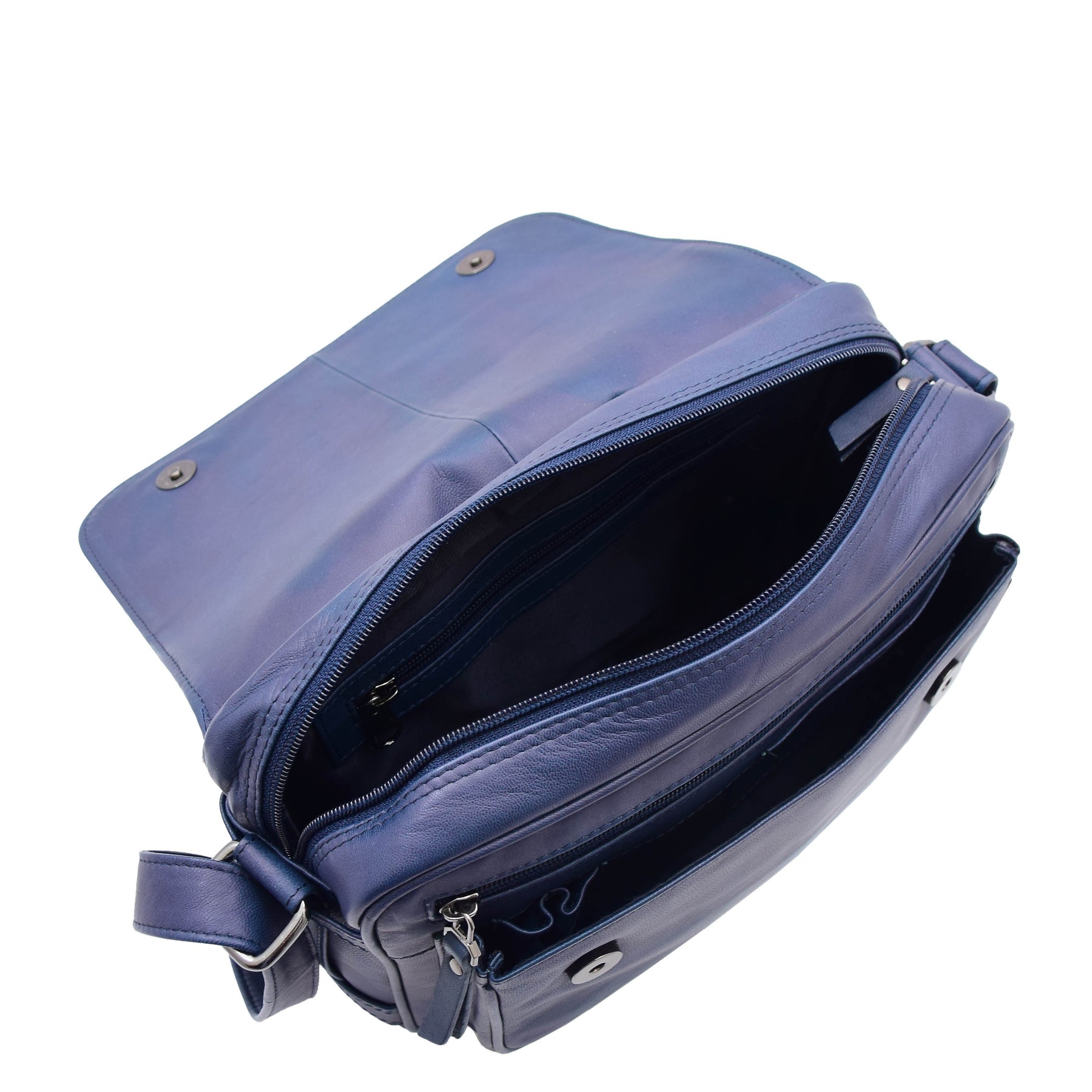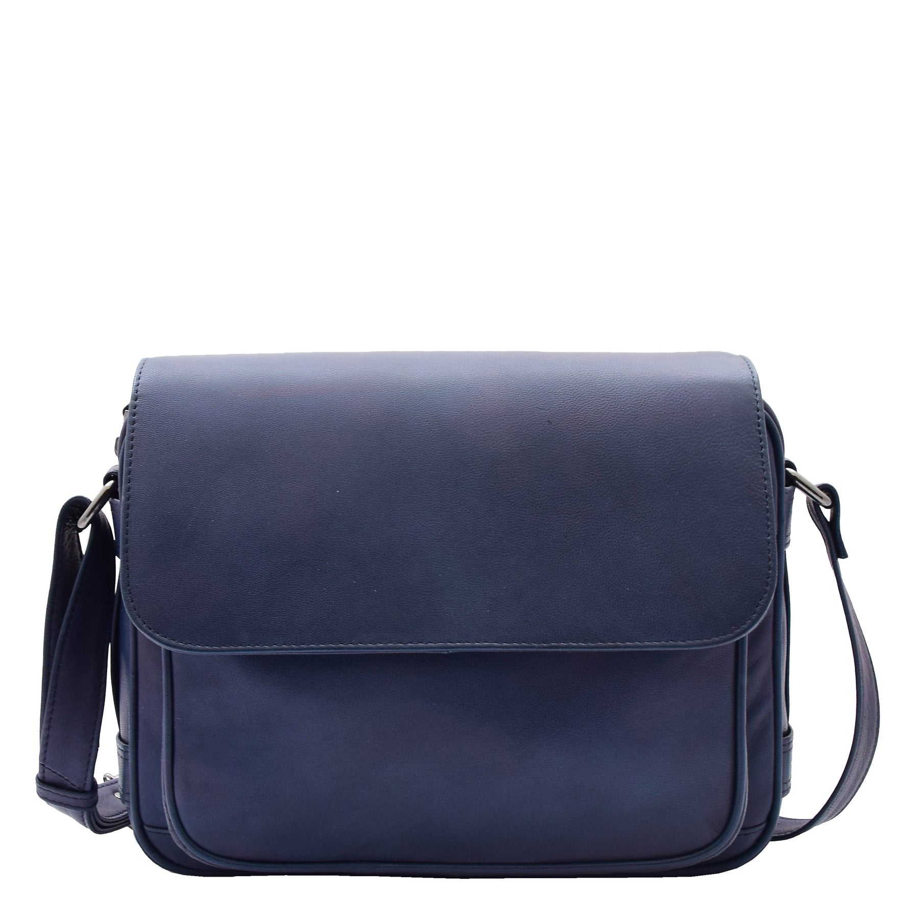 Womens Cross Body Real Leather Messenger Bag Flap Over Organiser HOL325 Navy