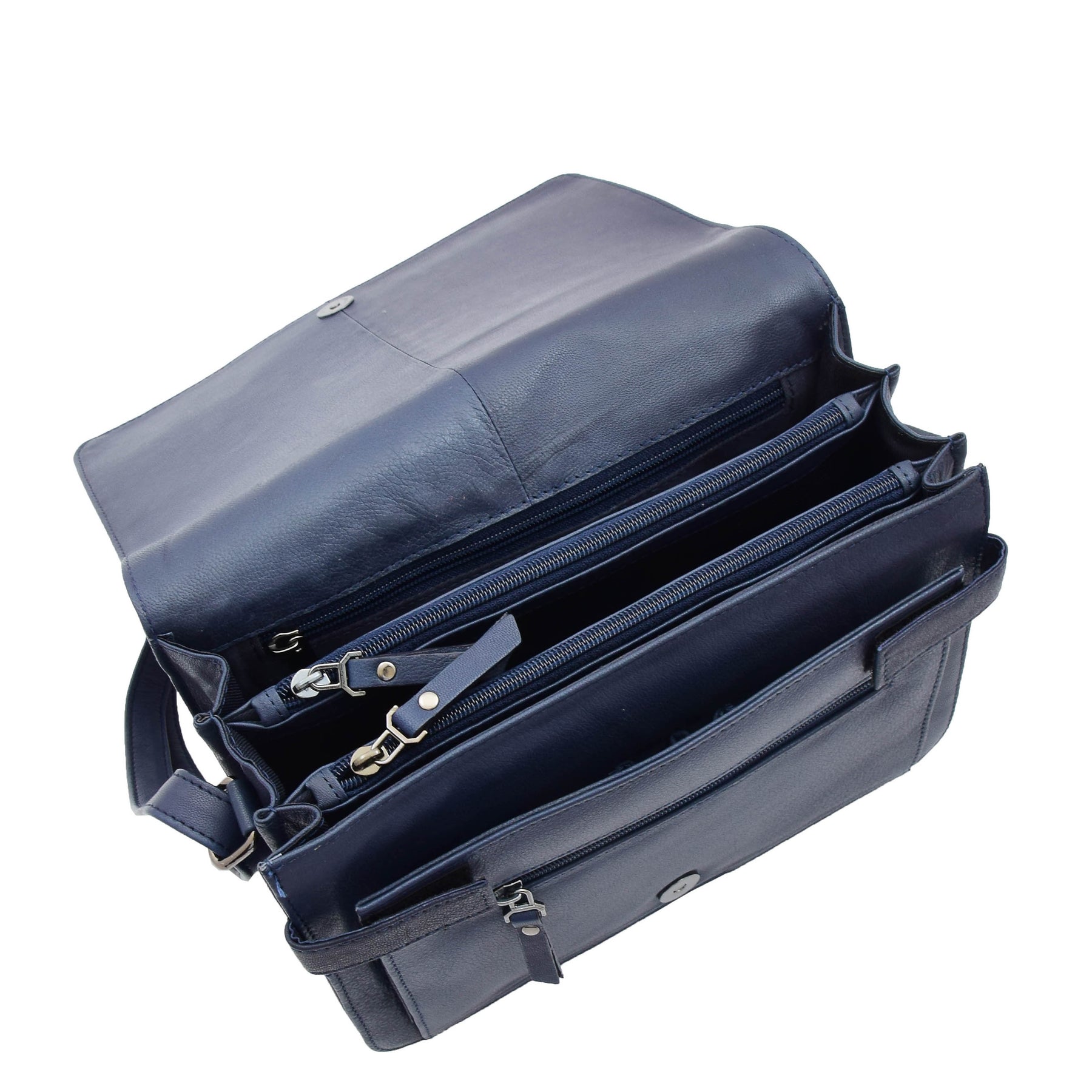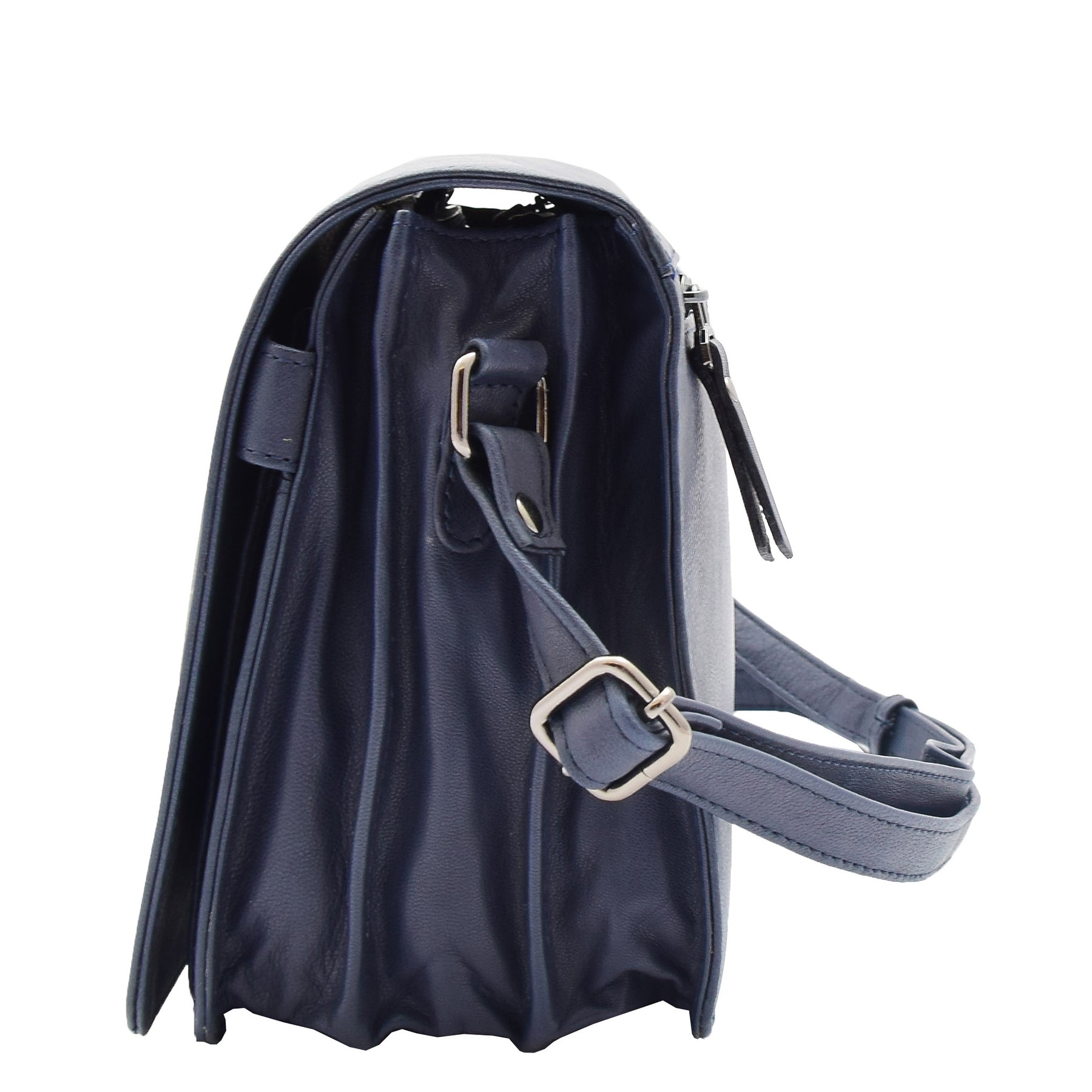 Womens Leather Cross Body Bag Flap Over Messenger Office Organiser HOL323 Navy