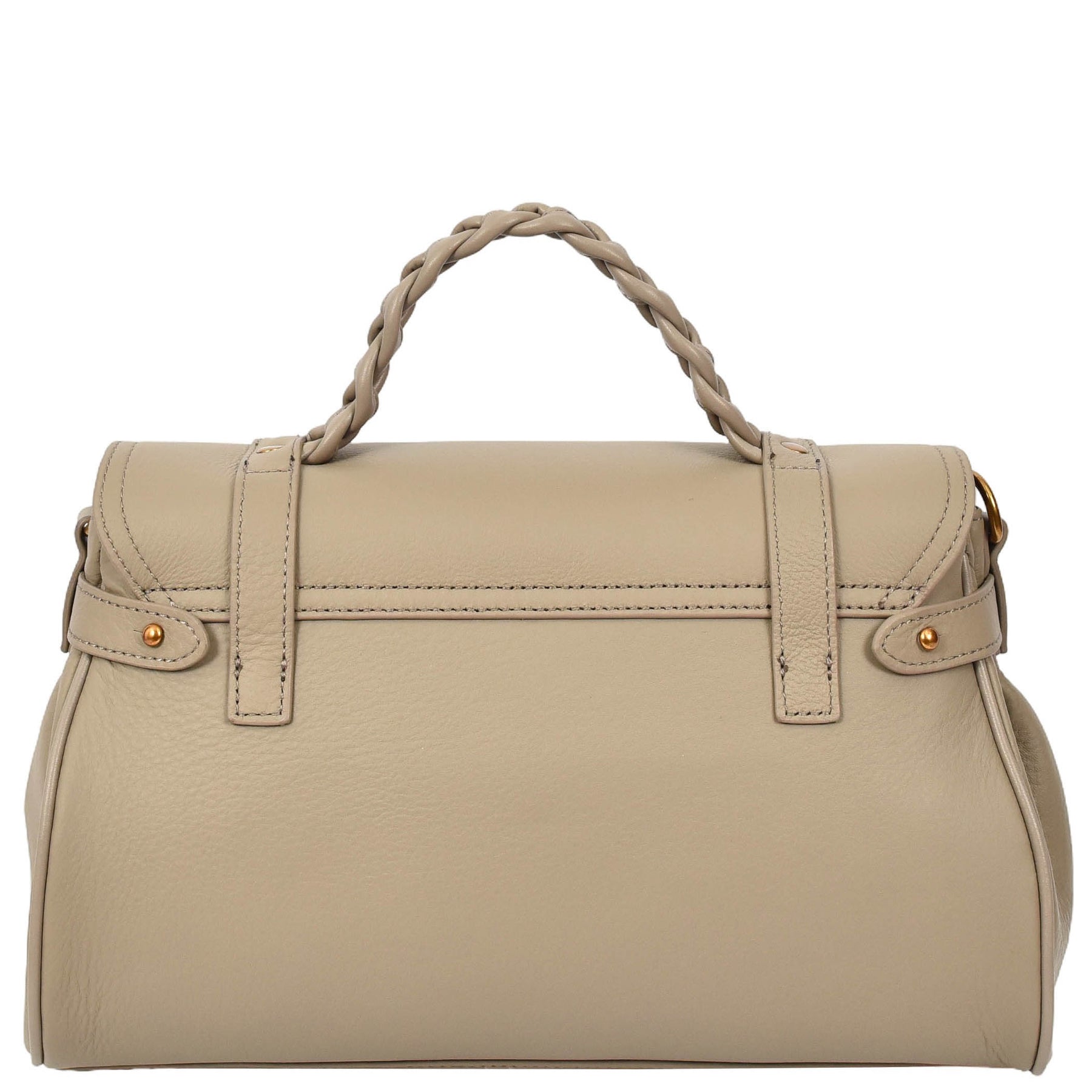 Womens Real Leather Handbag Classic Satchel Top-Handle Style Greta Beige