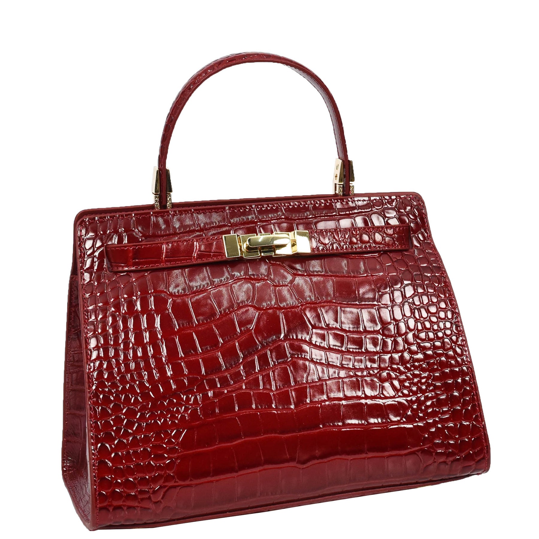 Womens Real Leather Handbag Small Organiser Top-Handle Handbag Camille Red