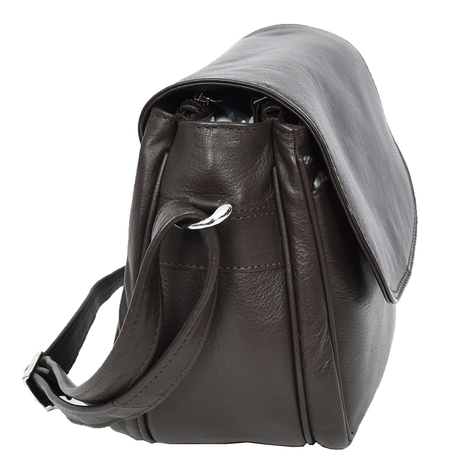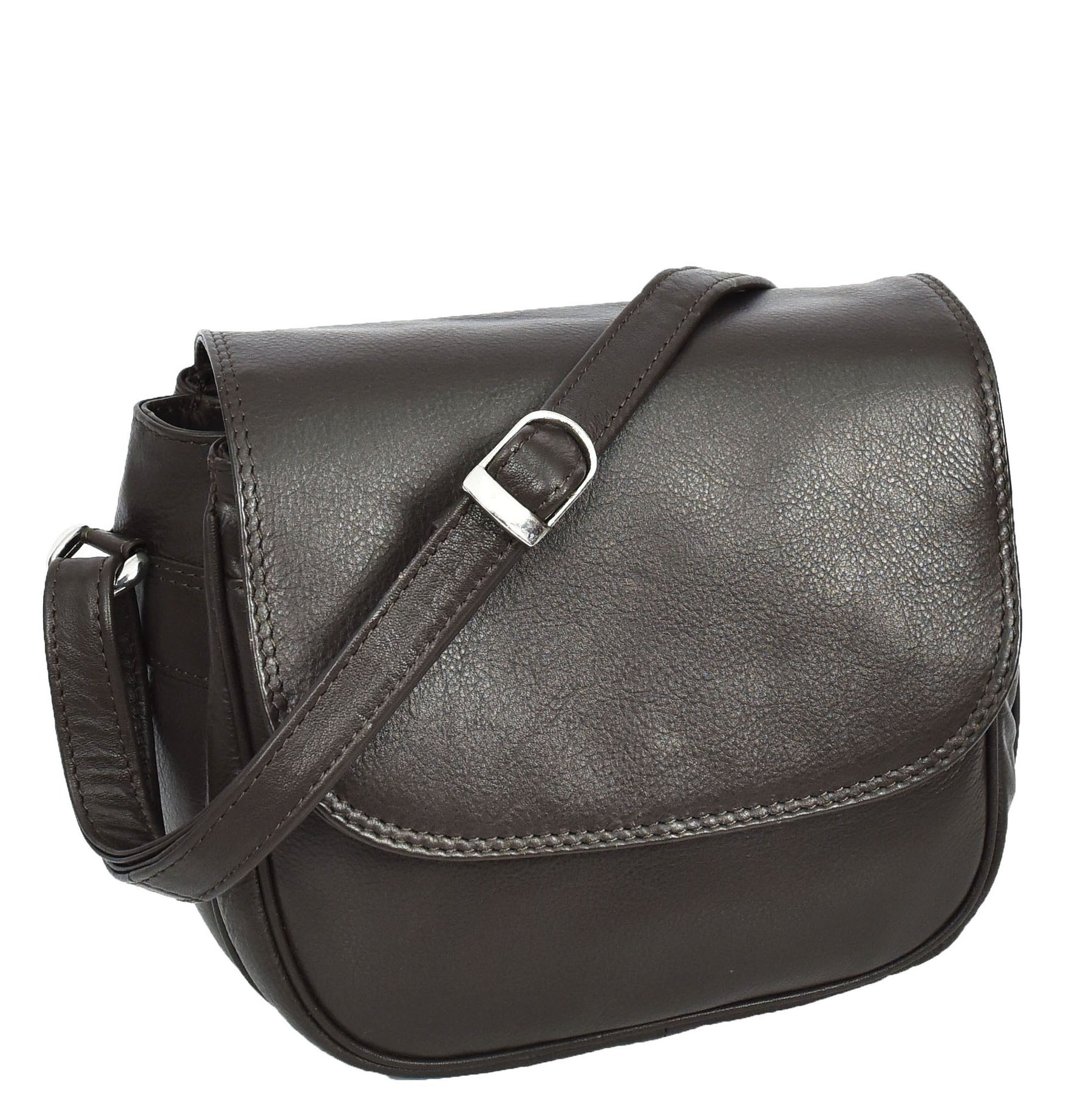 Womens Real Leather Small Crossbody Bag Classic Organiser Multi Pockets Kiera Brown