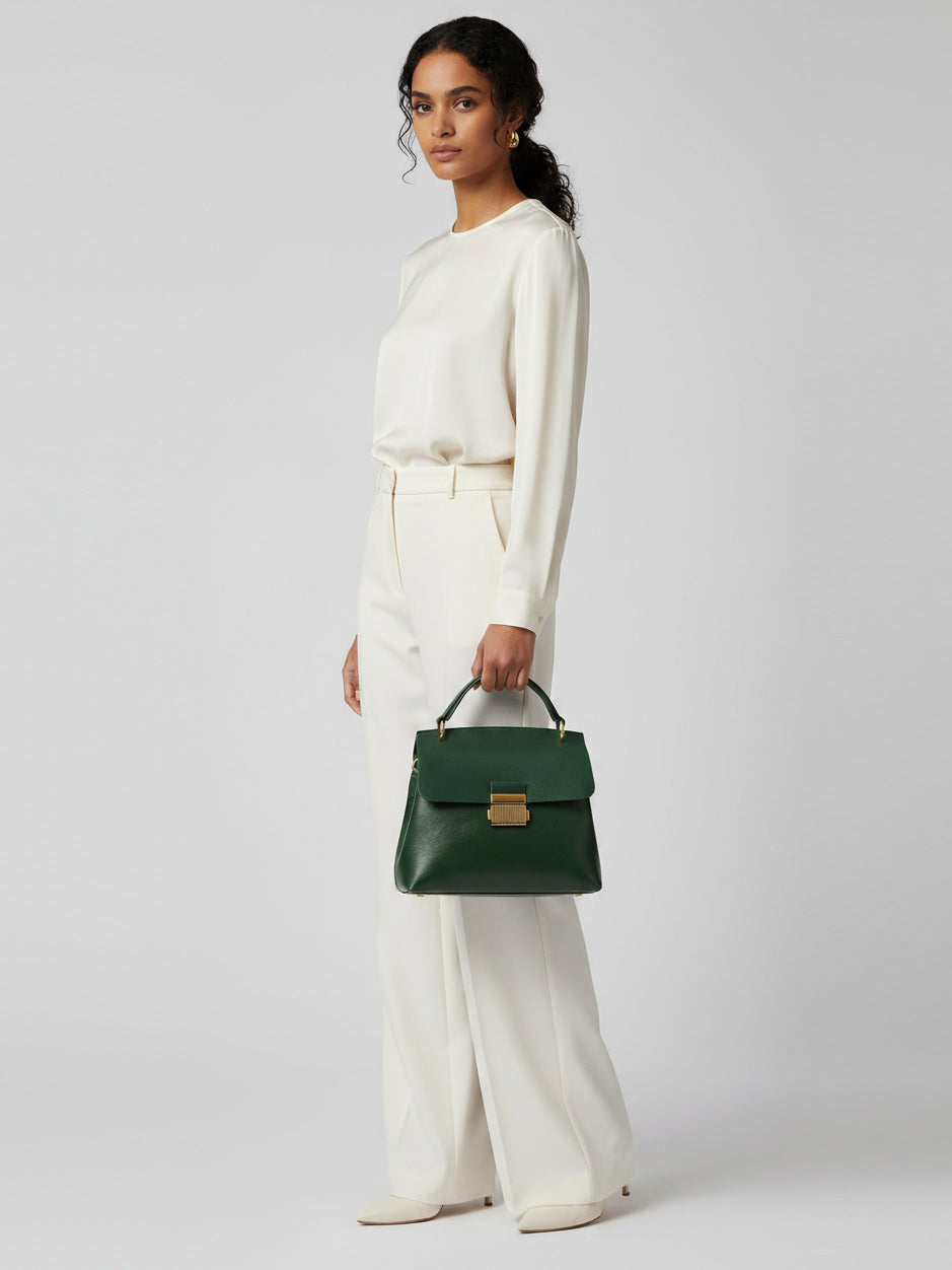 Womens Real Leather Small Handbag Gabriella Green