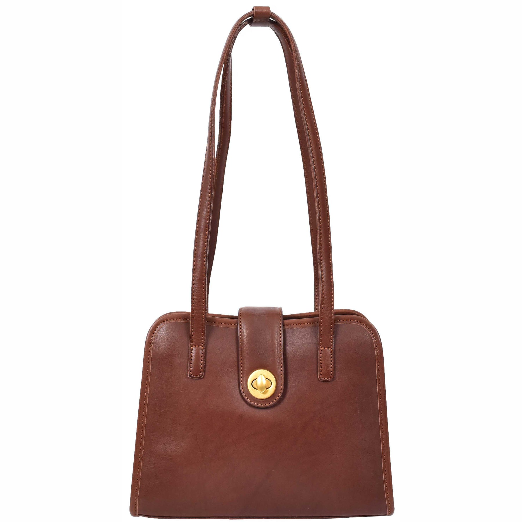 Genuine cow full grain Leather shoulder bag. Crafted from high-quality leather, this bag is both stylish and durable. The twist lock opening adds a touch of sophistication, while the inside compartment offers plenty of space for all your belongings. Stay organized with the open and zip pockets inside. The beautiful lined interior adds a pop of color to the design.