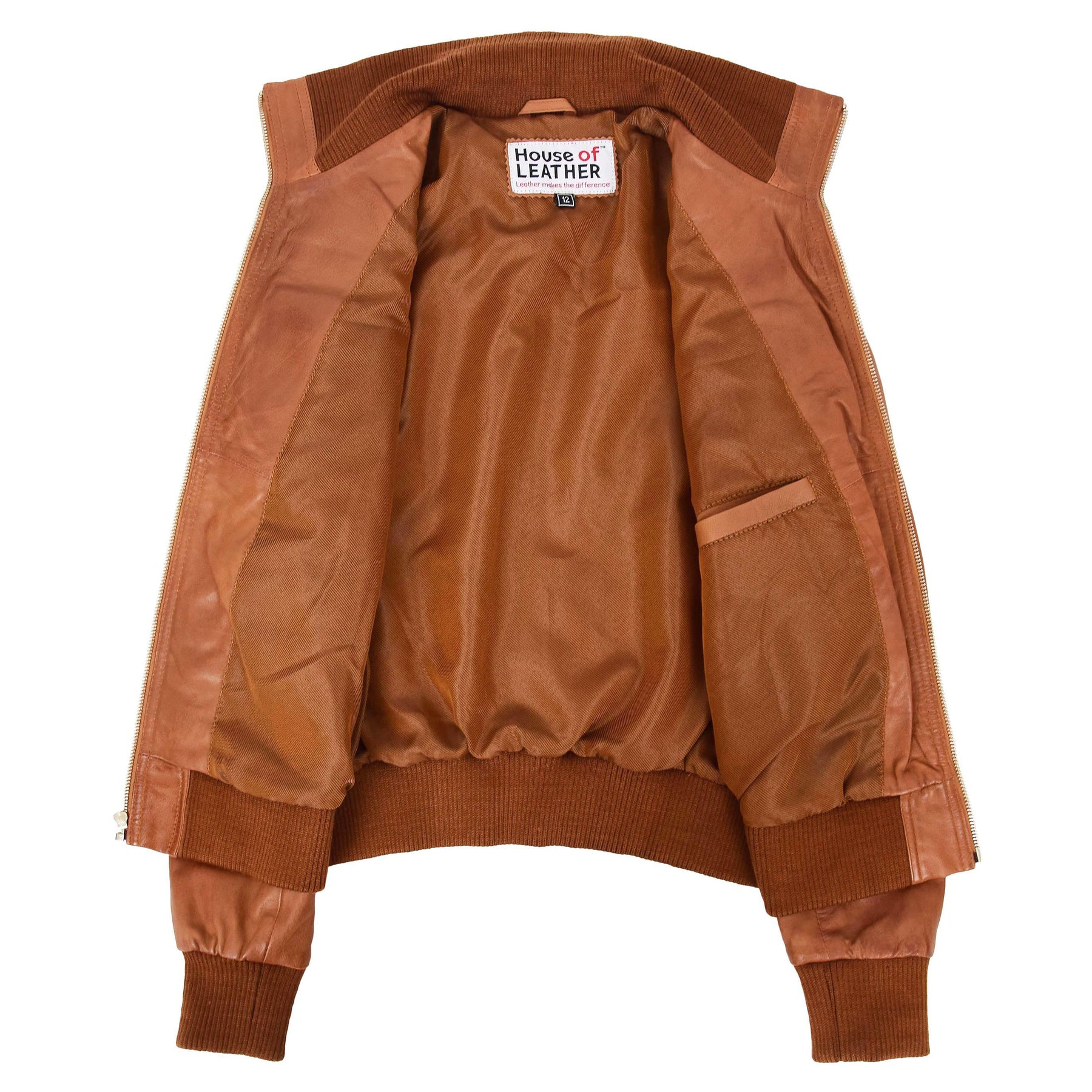 Womens Leather Classic Bomber Jacket Motto Tan 5
