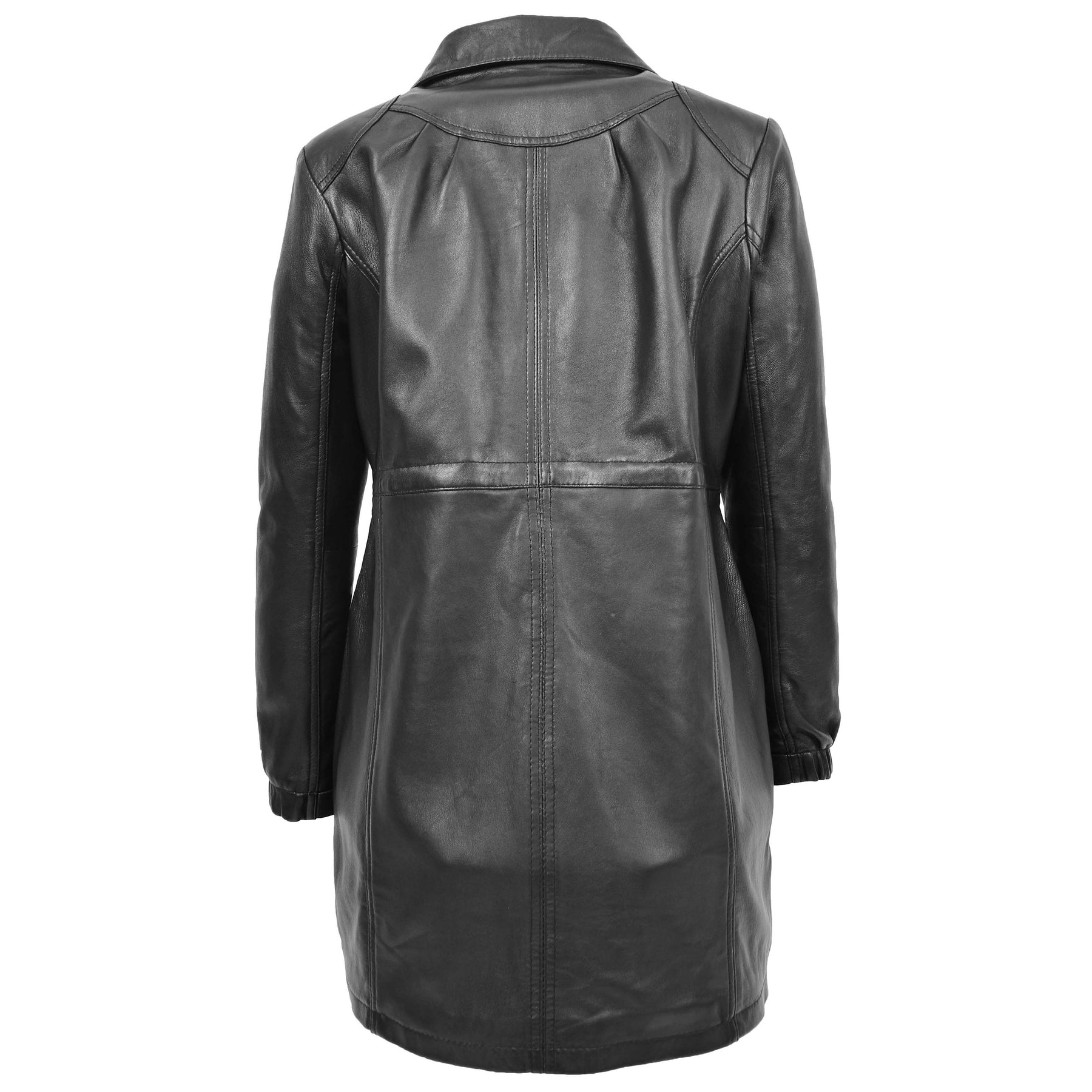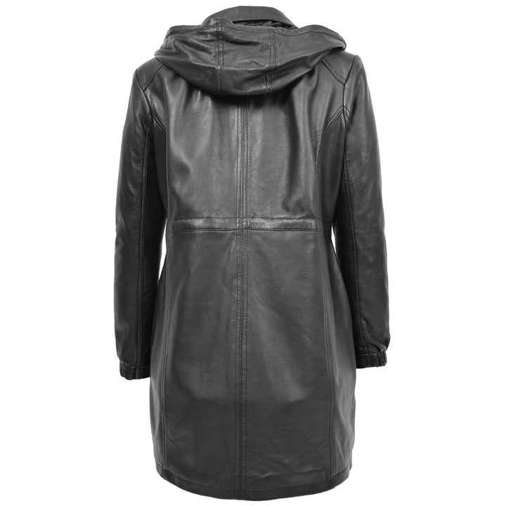 Womens 3/4 Length Leather Duffle Coat Kyra Black