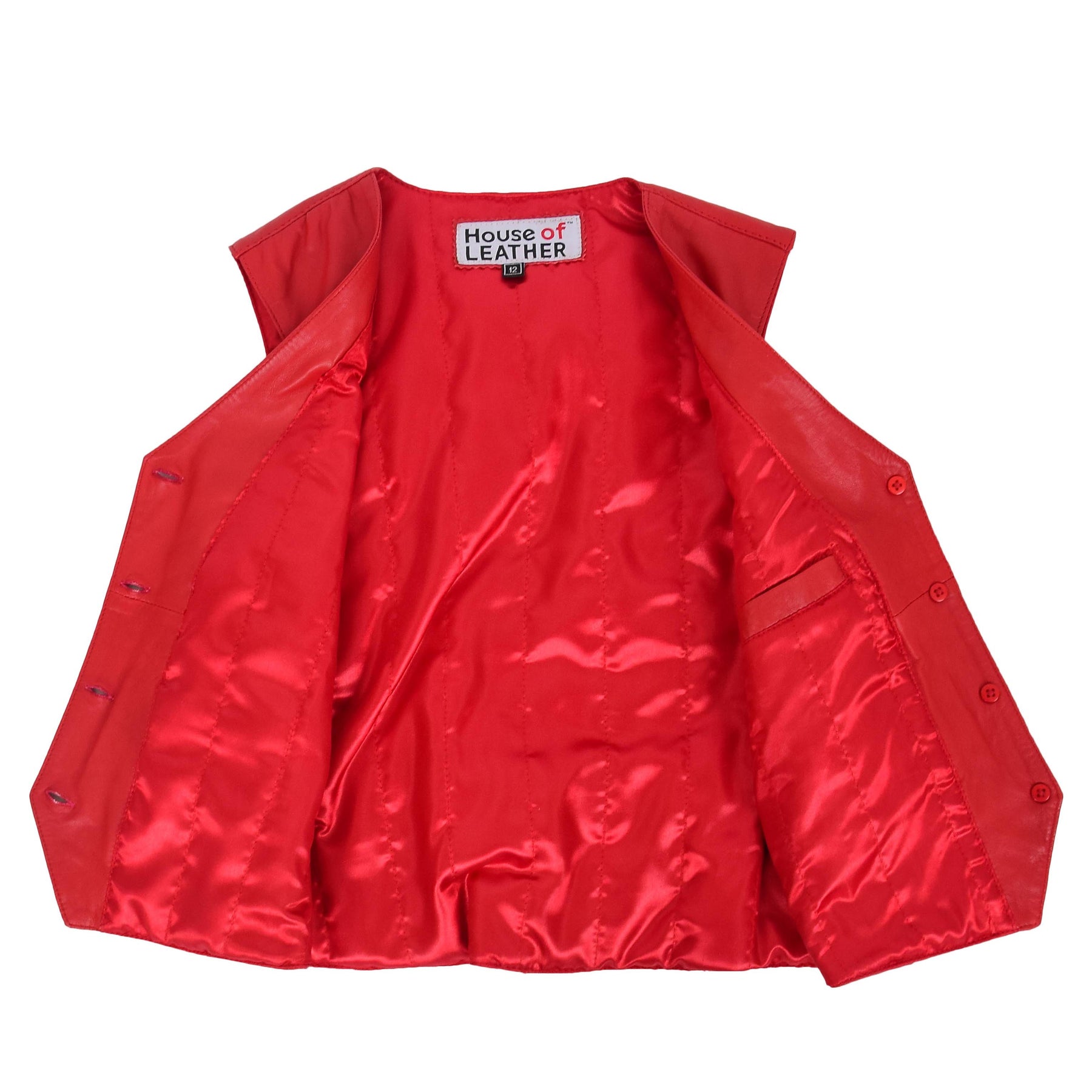 Womens Leather Classic Buttoned Waistcoat Rita Red