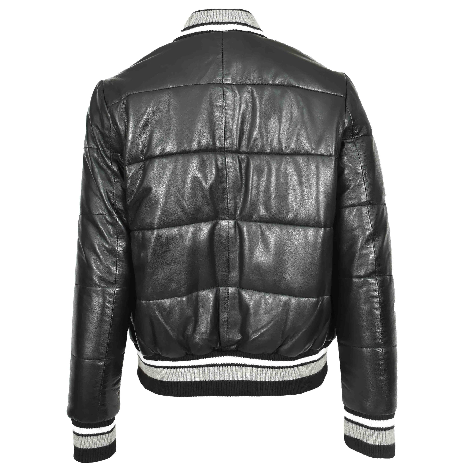 Womens Real Leather Puffer Bomber Jacket Dolly Black 4