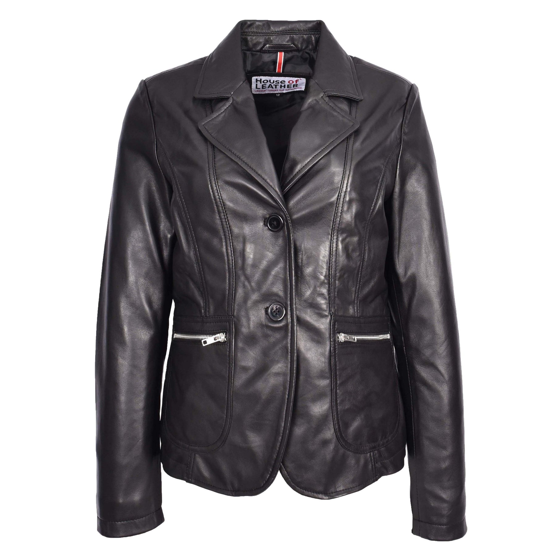 Exude confidence and sophistication with this women's real leather two-button blazer jacket.