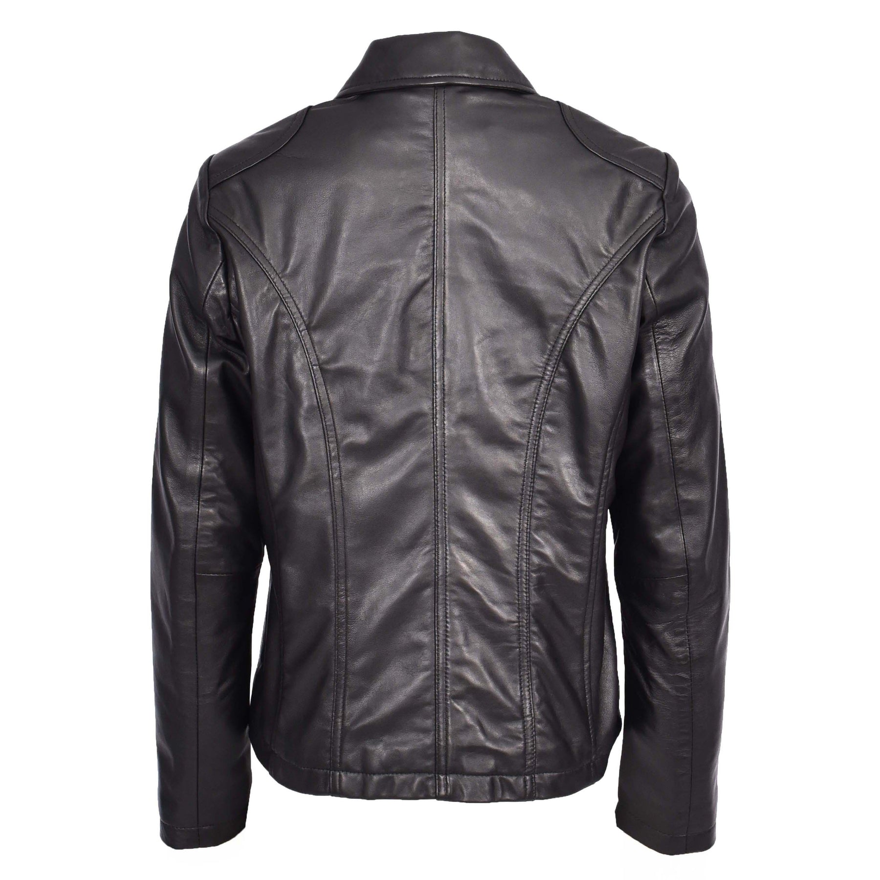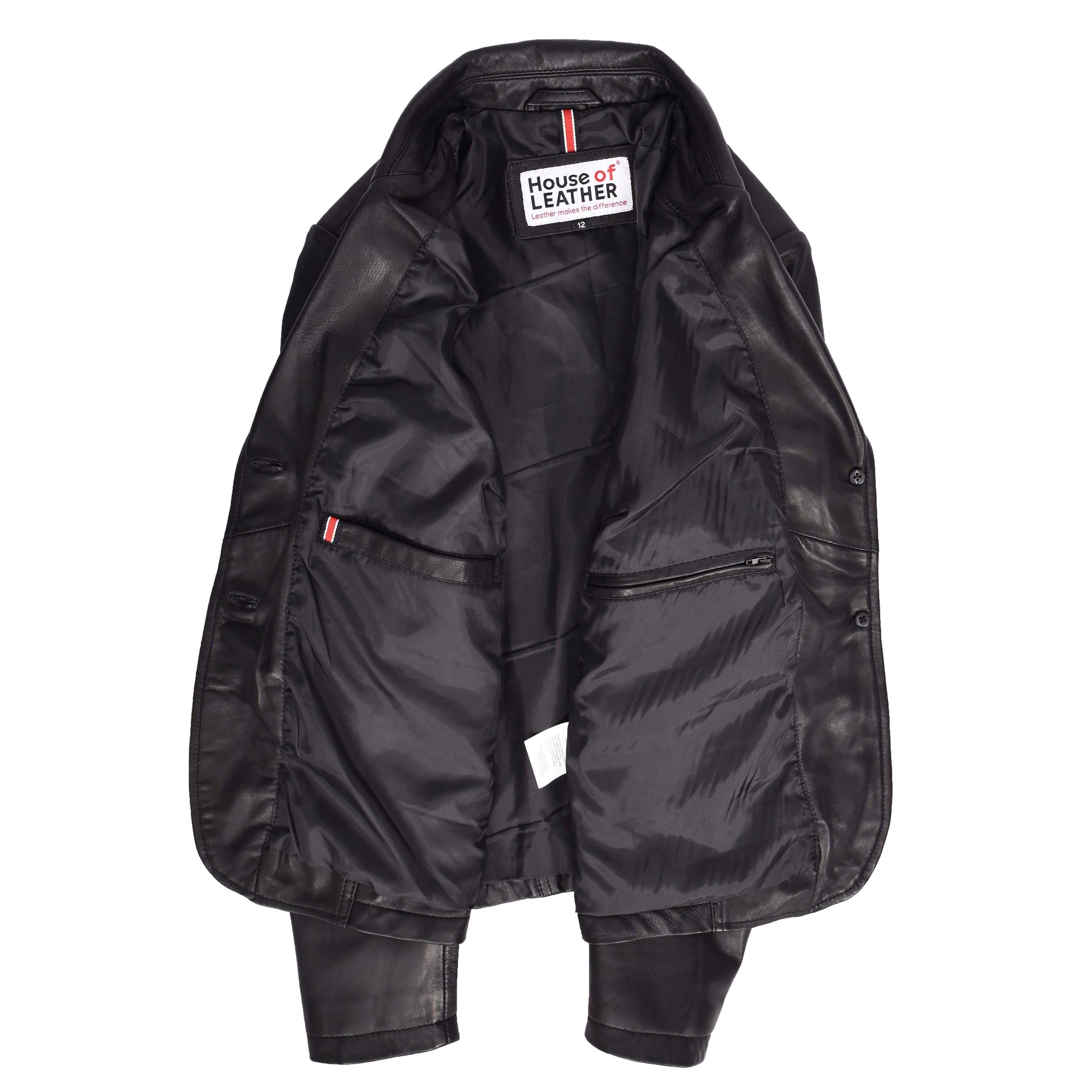 Womens Real Leather Two Button Blazer Jacket Gracie Black