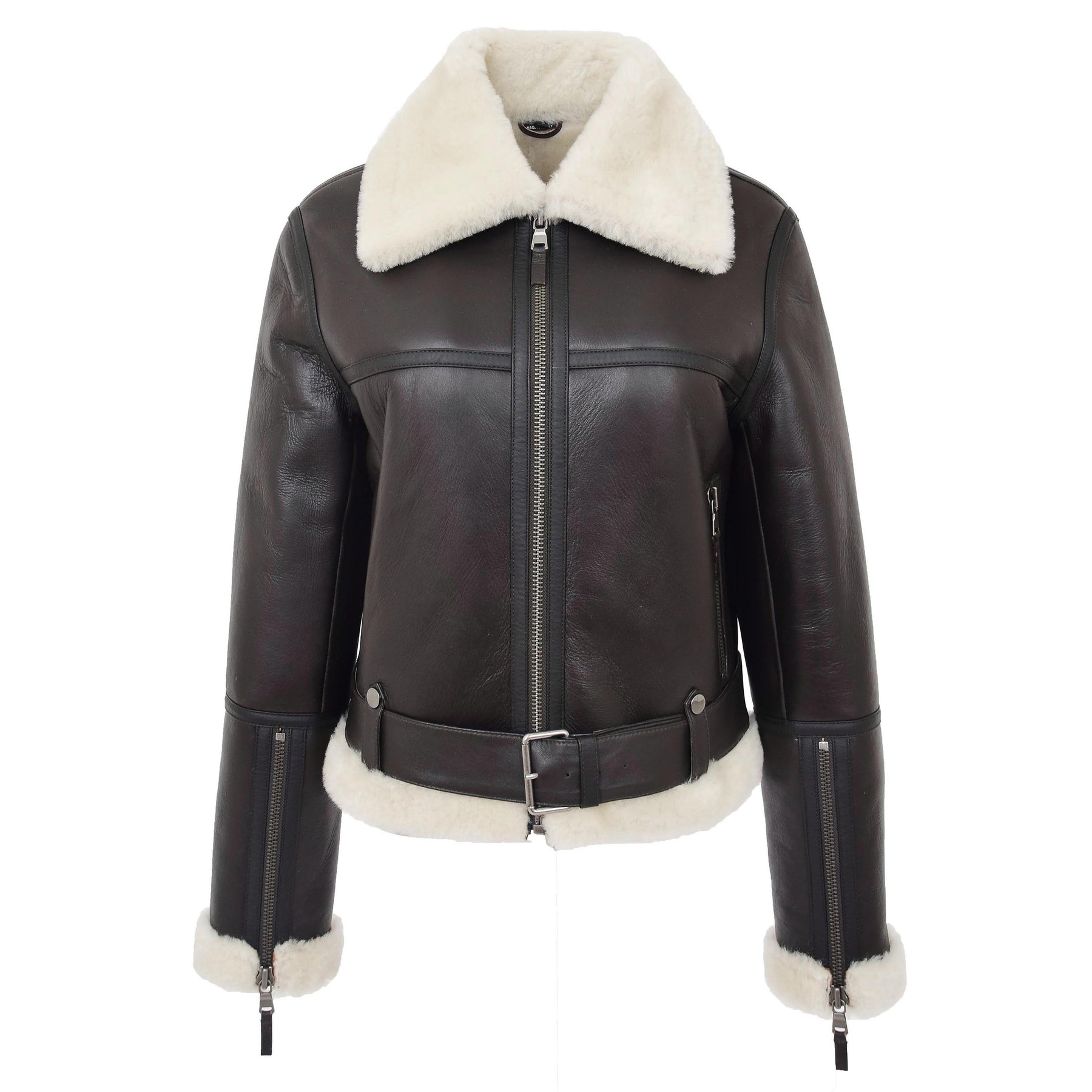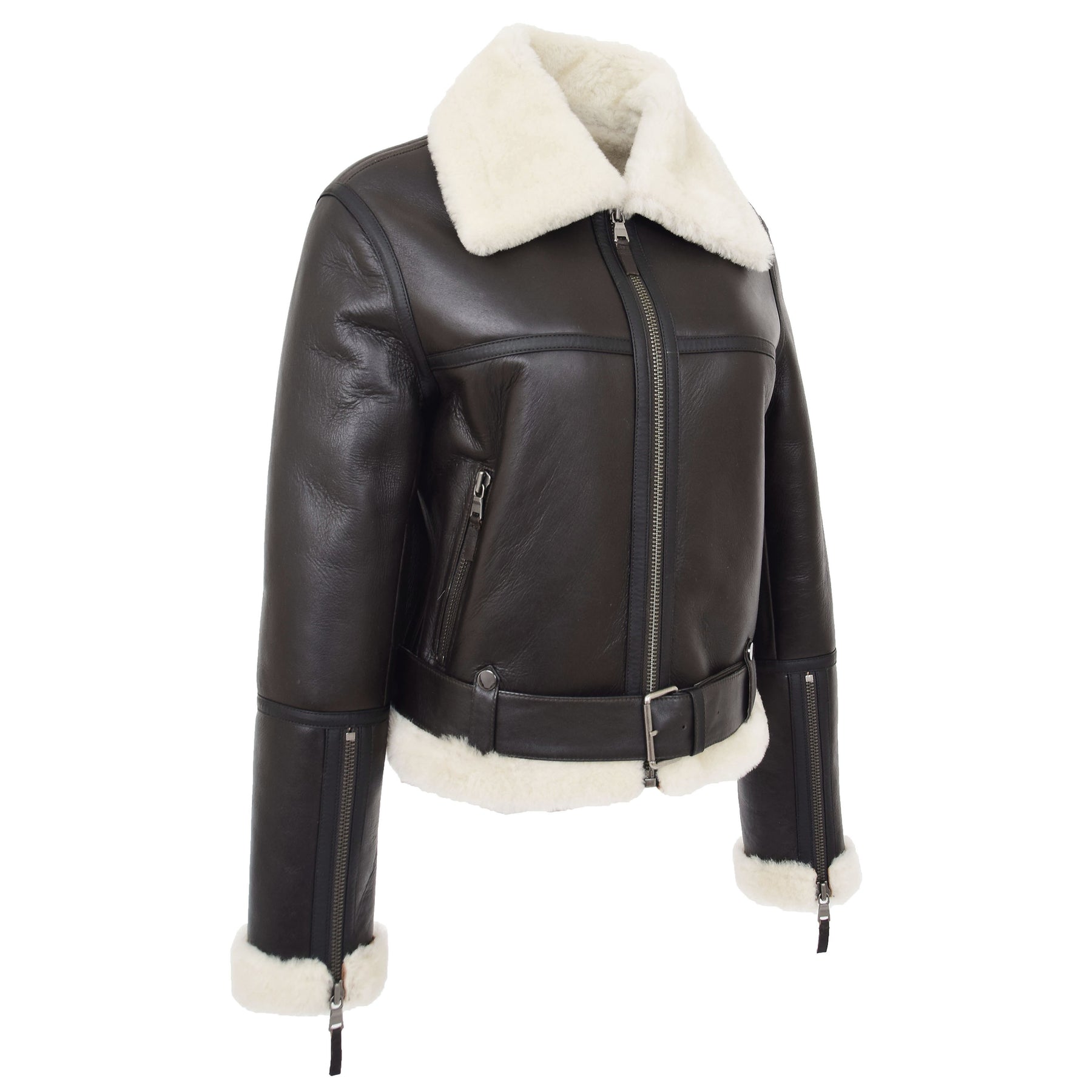 Womens Sheepskin Aviator RAF Pilot Jacket Elsie Brown White