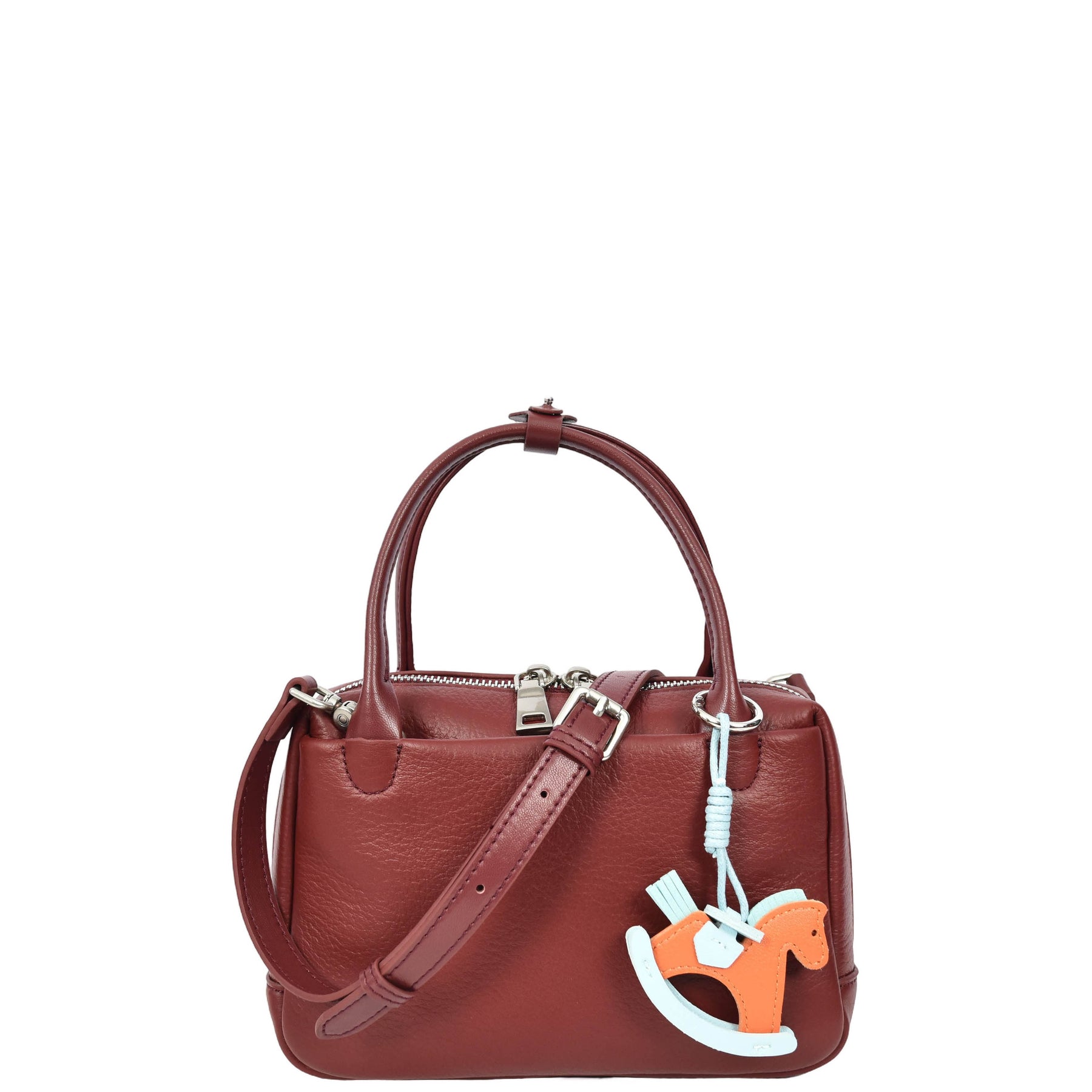 Crafted from real luxury leather, the structured silhouette offers a refined aesthetic, enhanced by a removable horse-shaped charm in contrasting tones for a playful yet chic accent.