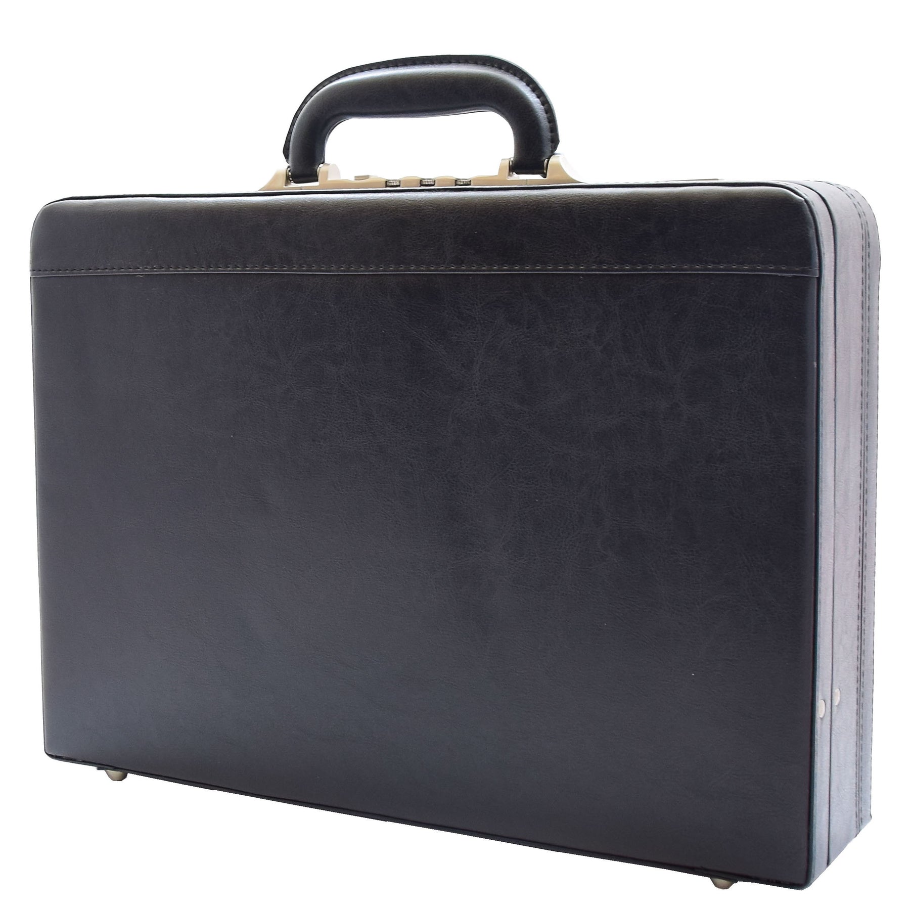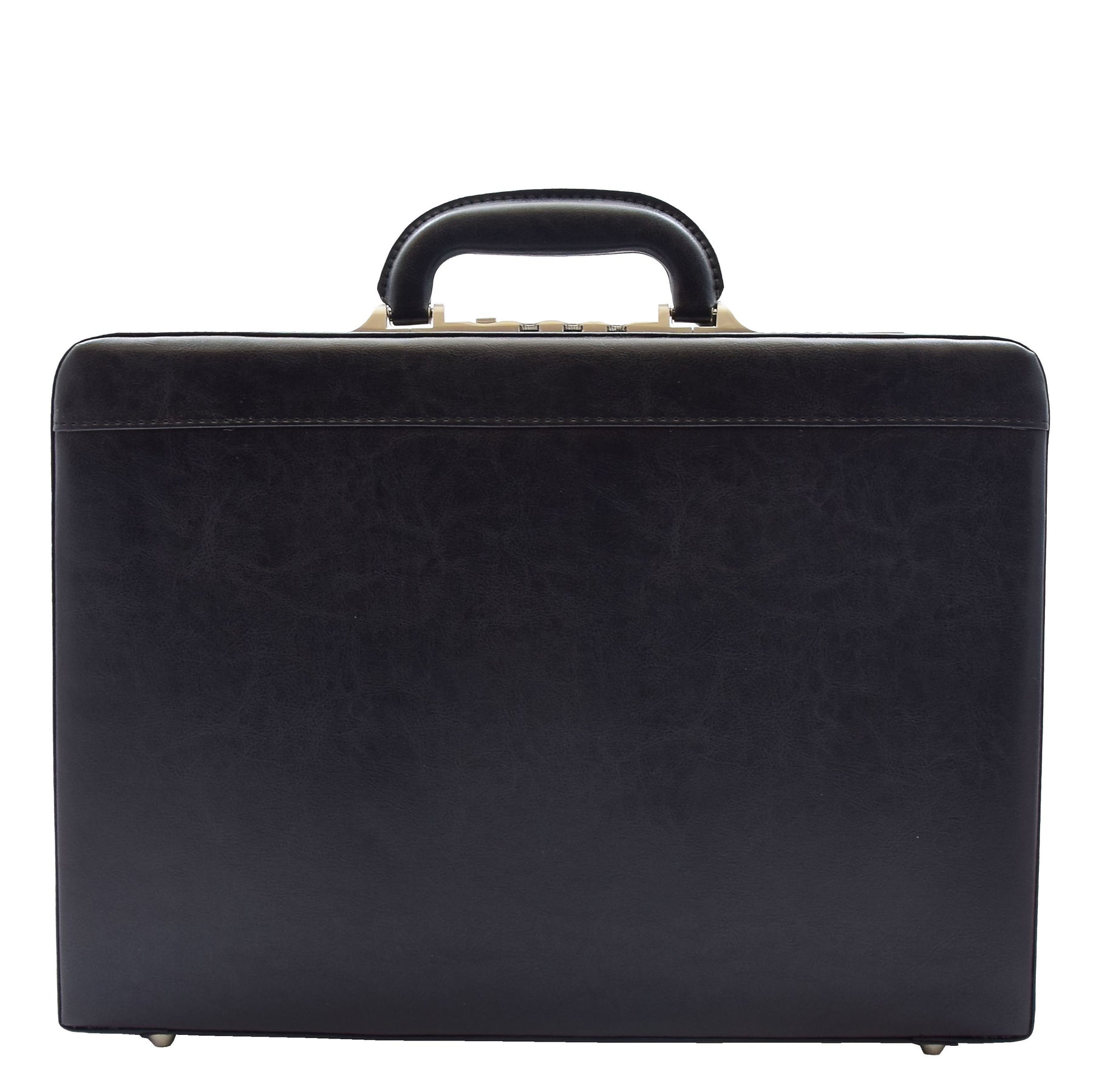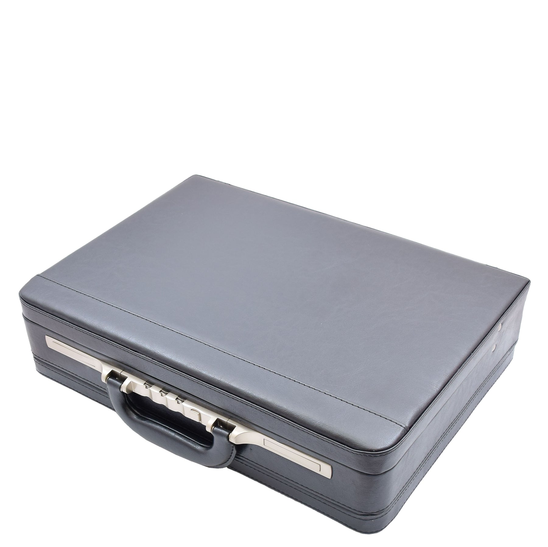Attache Briefcase Classic Faux Leather Bag H521 Black Large