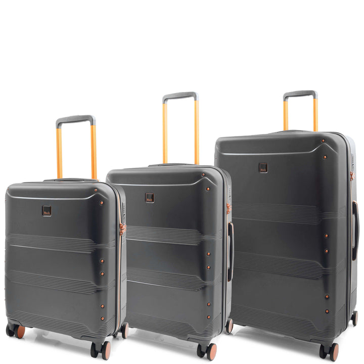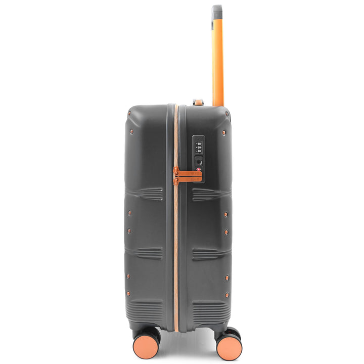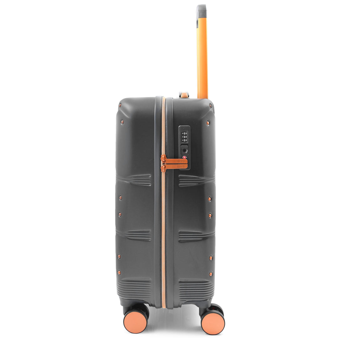 Our futuristic suitcase boasts a bold and angled design, with ridged detailing on the front and back that adds a unique touch. Crafted from a blend of ABS and PC materials, this suitcase is both durable and stylish, making it the perfect travel companion for the modern traveller.