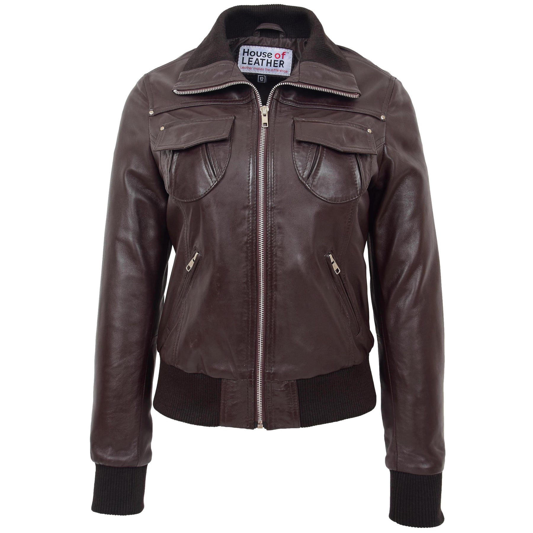 Womens Leather Classic Bomber Jacket Motto Brown 6