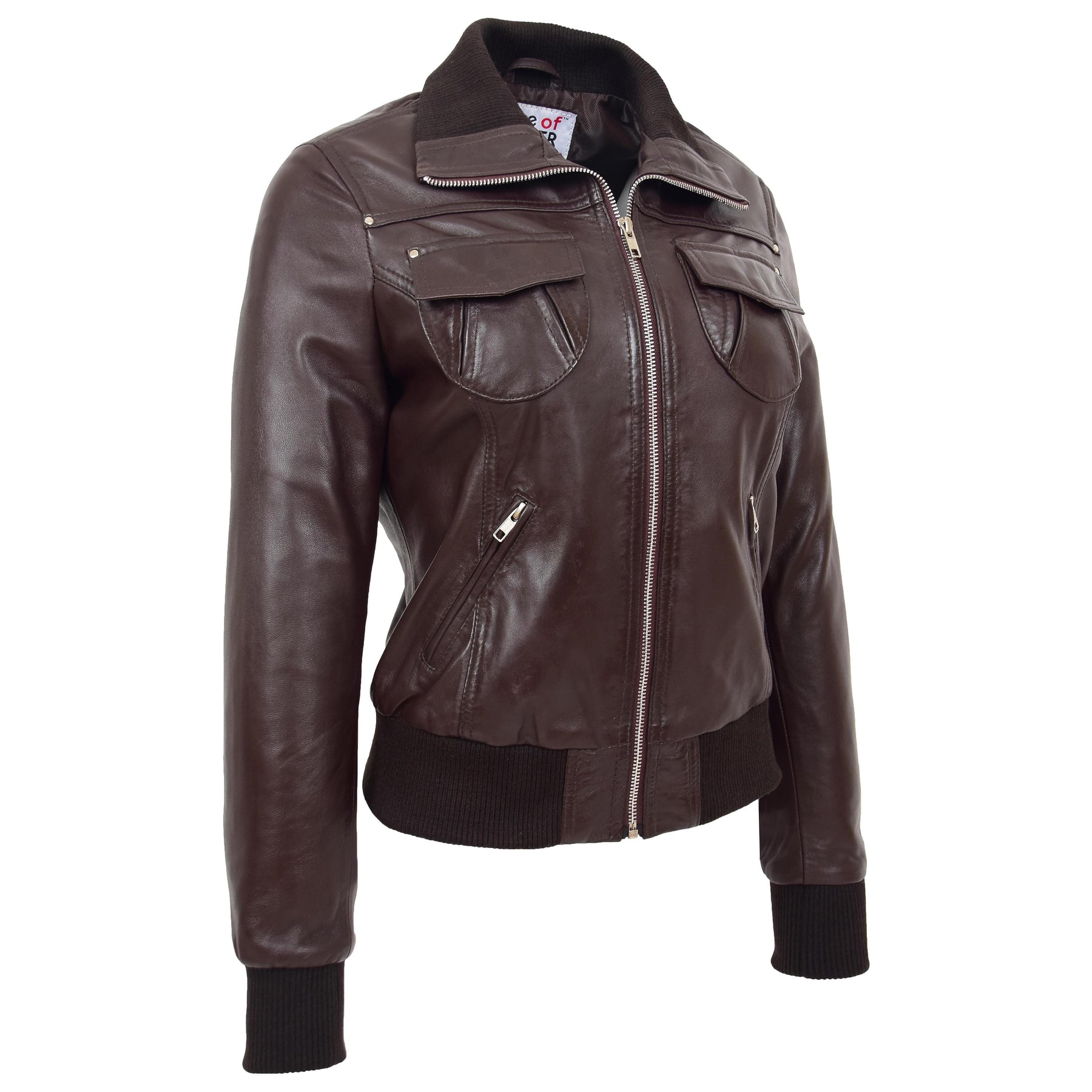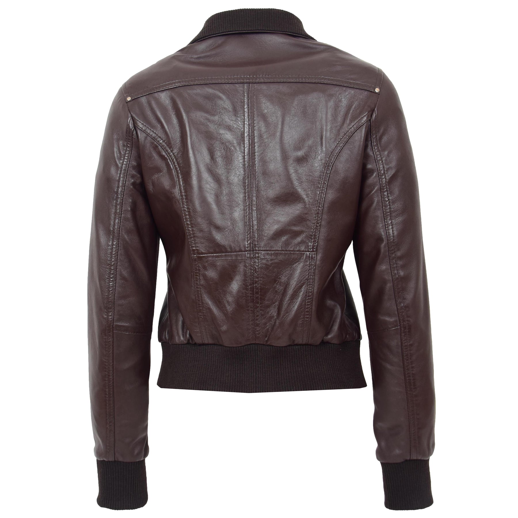 Womens Leather Classic Bomber Jacket Motto Brown 5