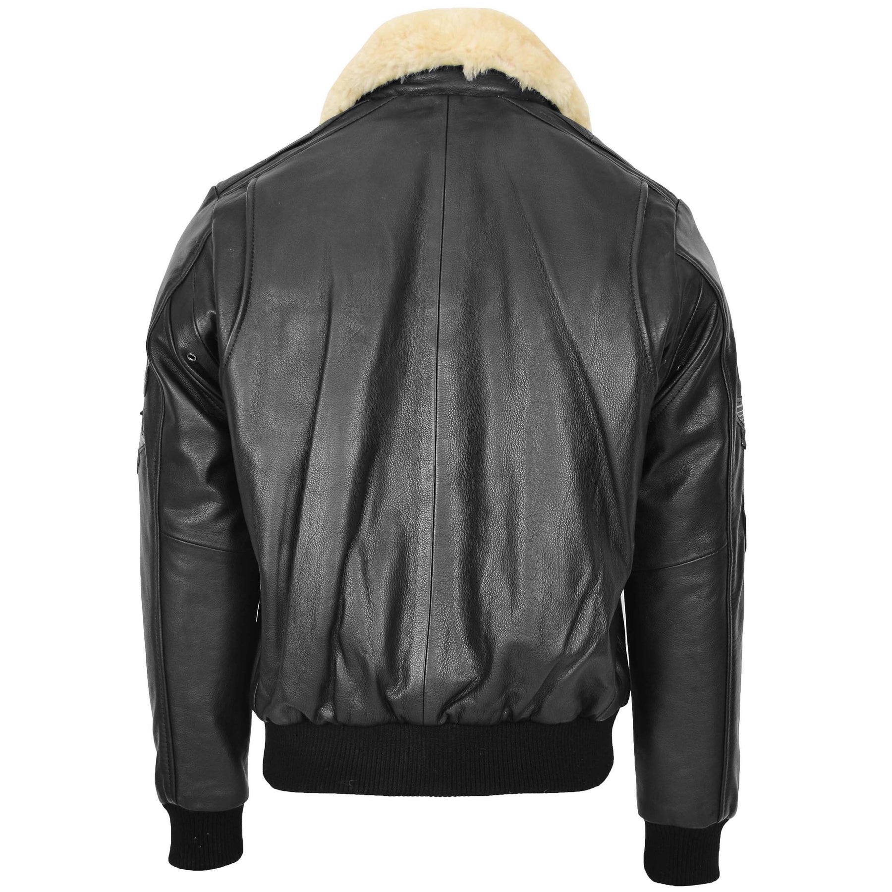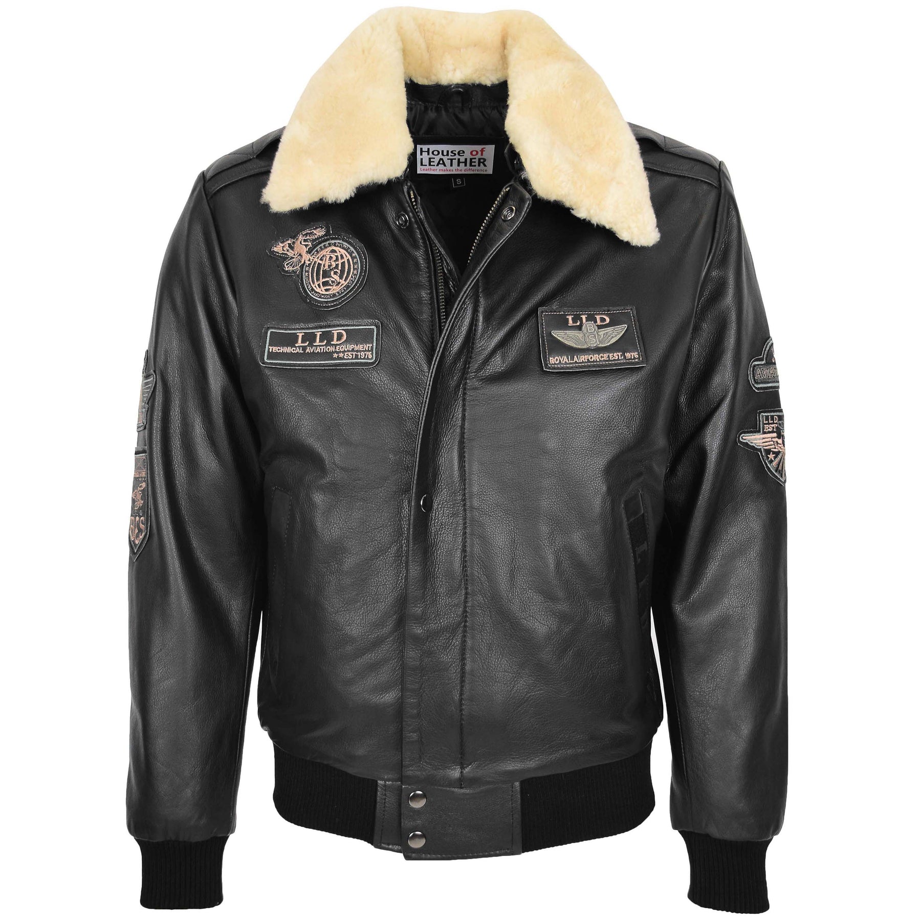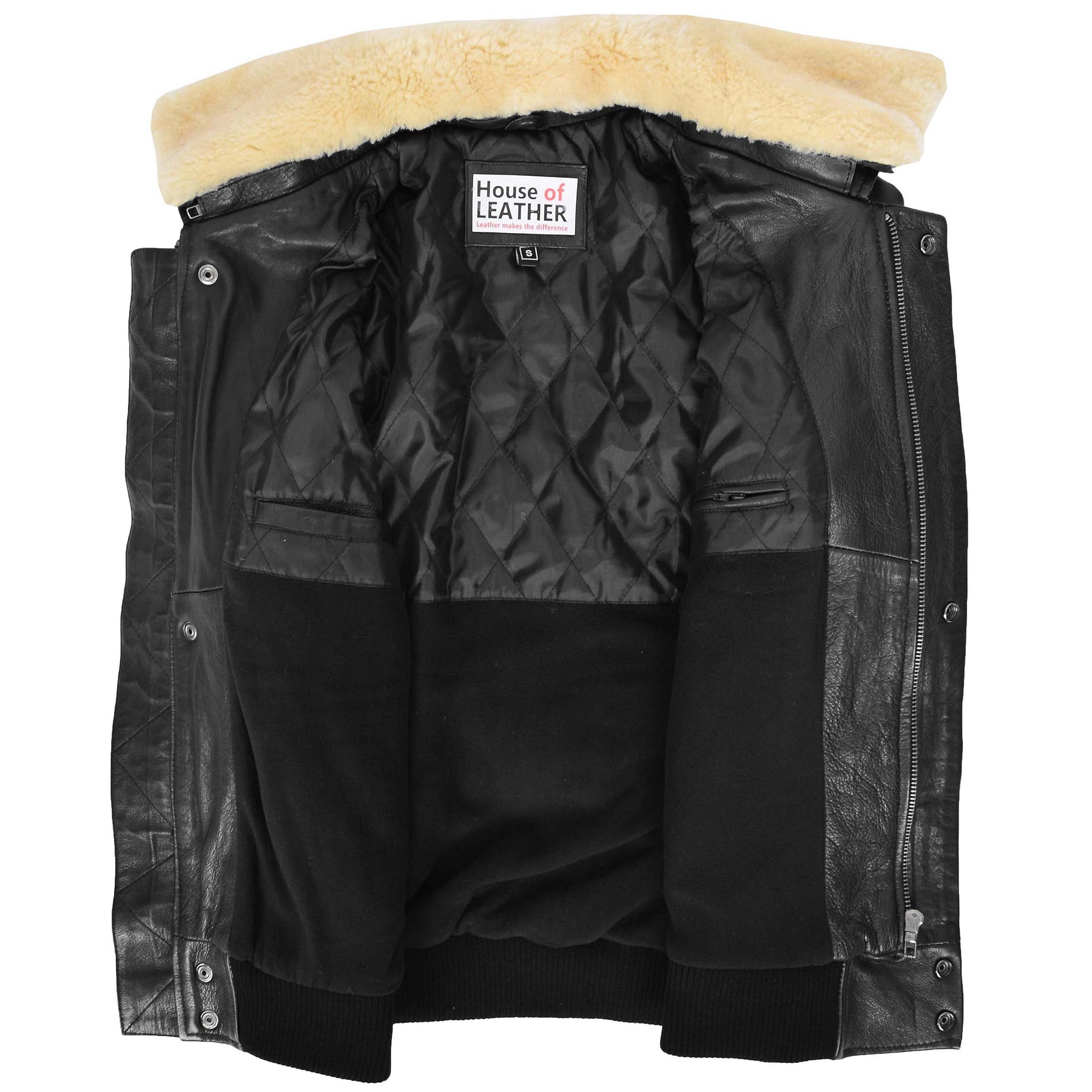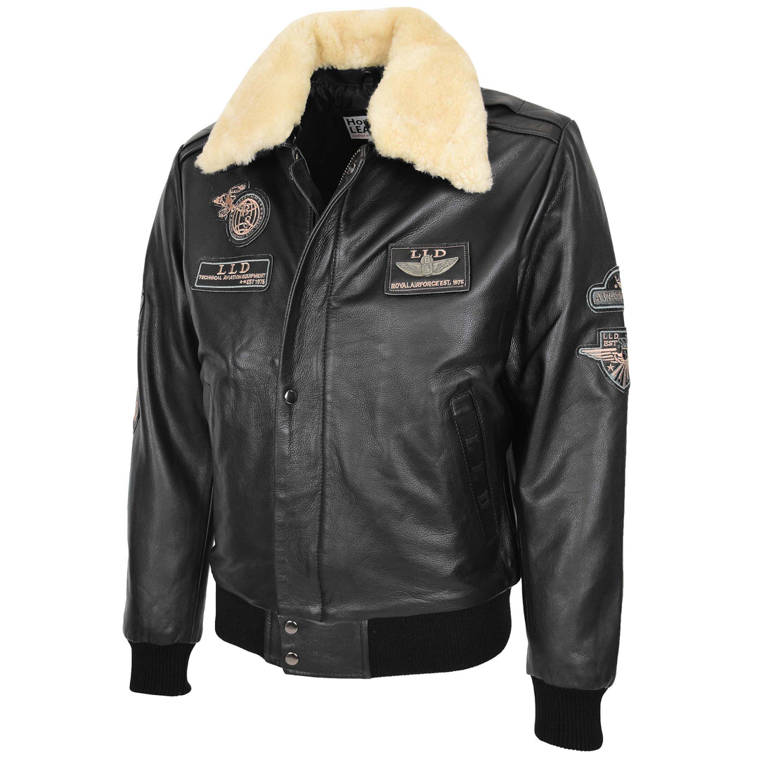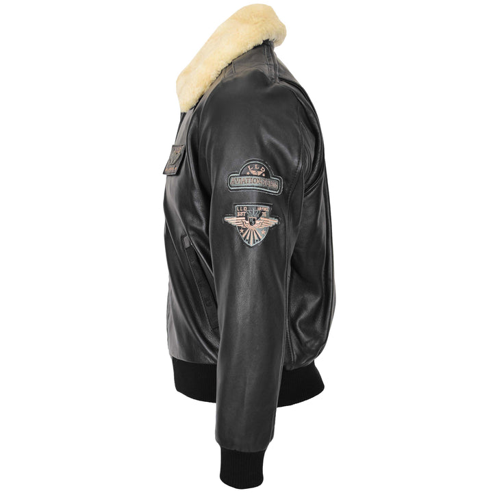 Mens Leather Jacket with Detachable Collar Pilot-N Black