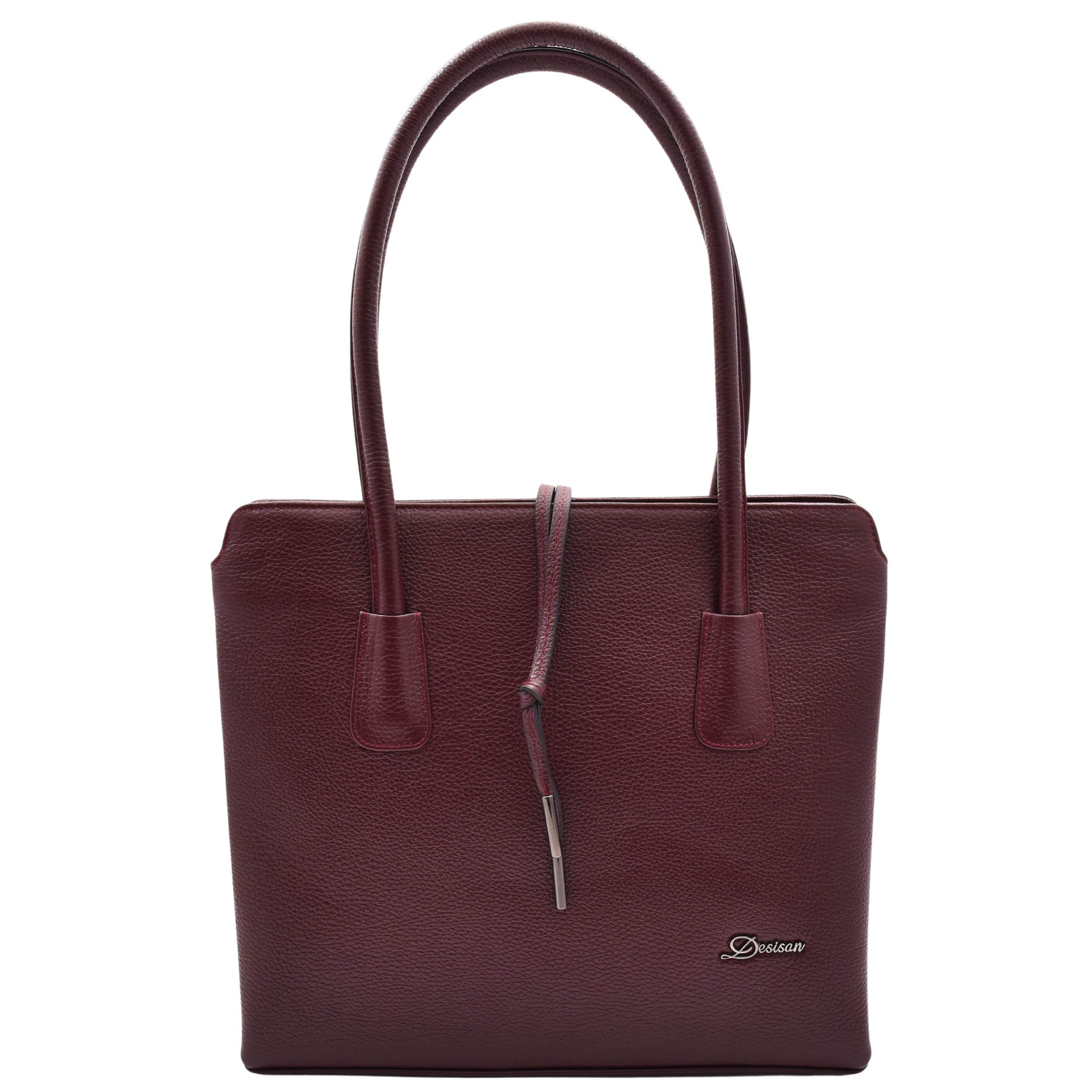 Leather Classic Tote Style Zip Opening Large Shoulder Bag CYNTHIA Burgundy 1