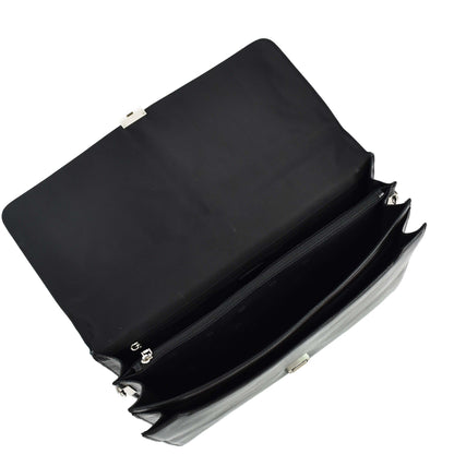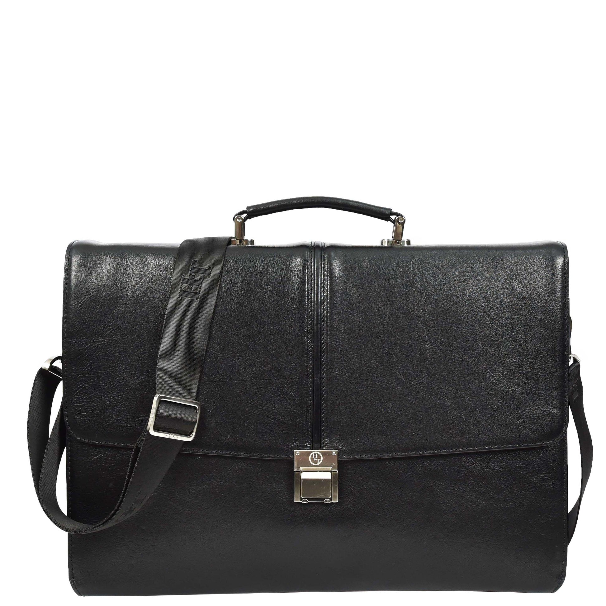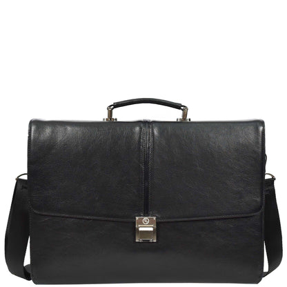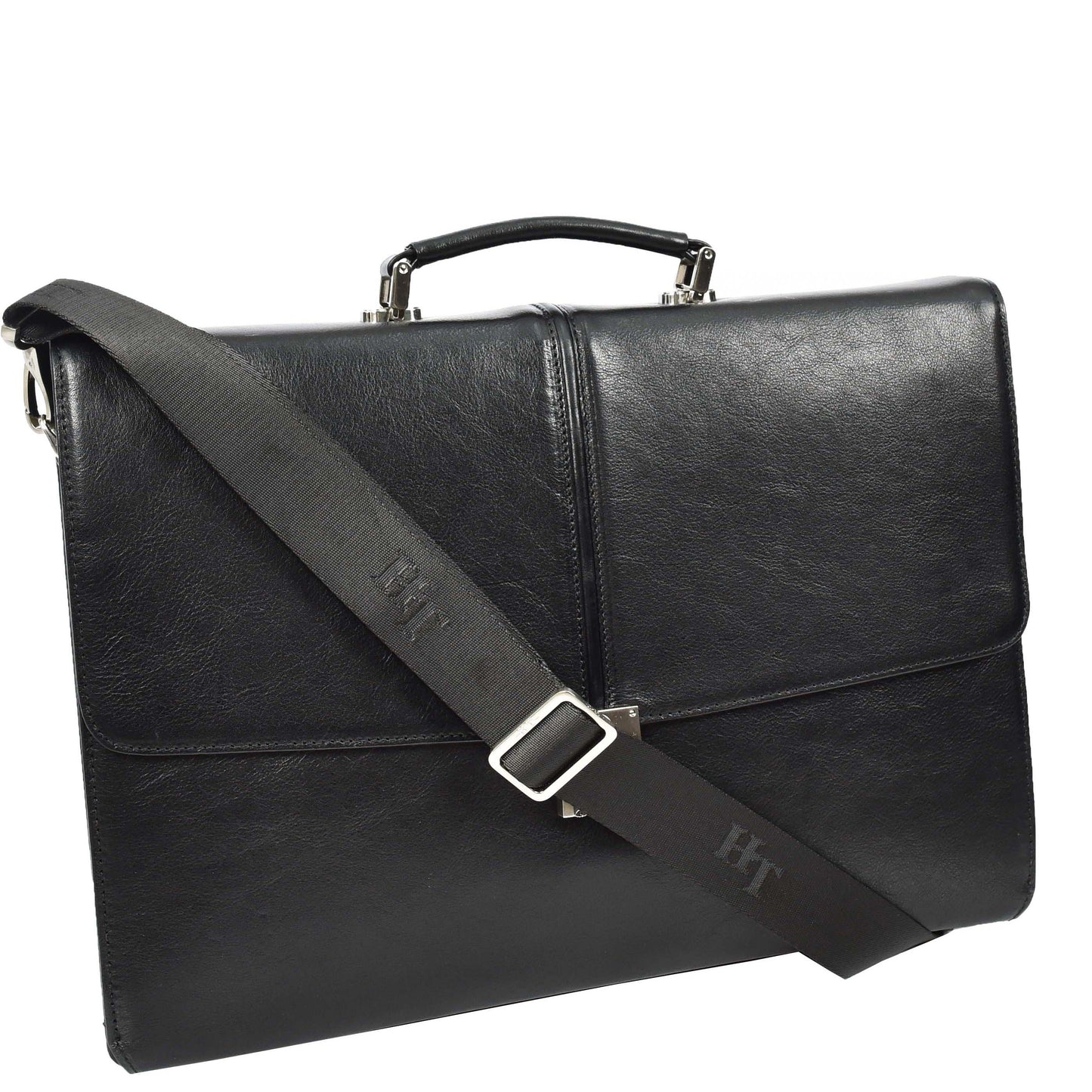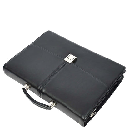 Mens Genuine Leather Briefcase Large Size Organiser Messenger Bag Erbil Black