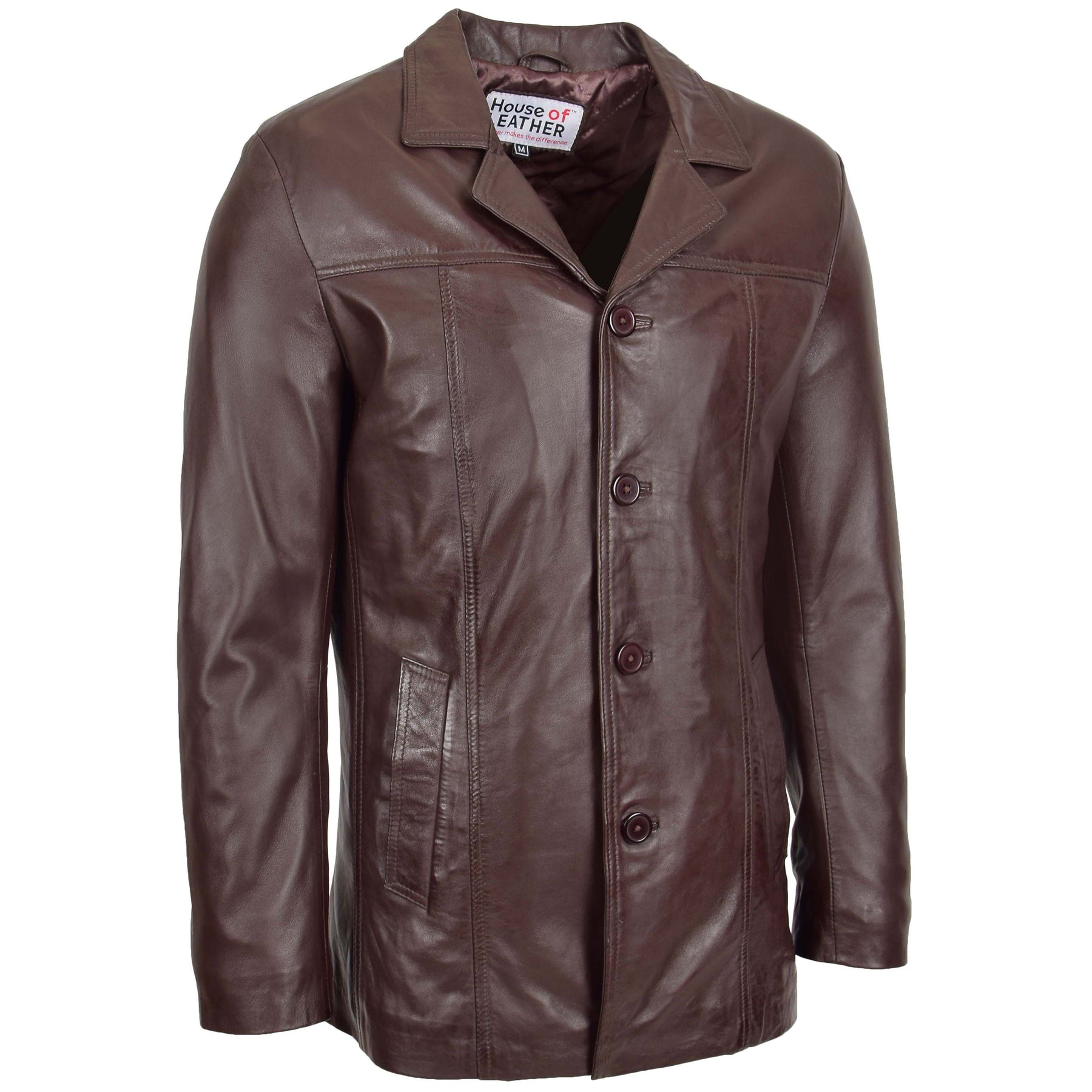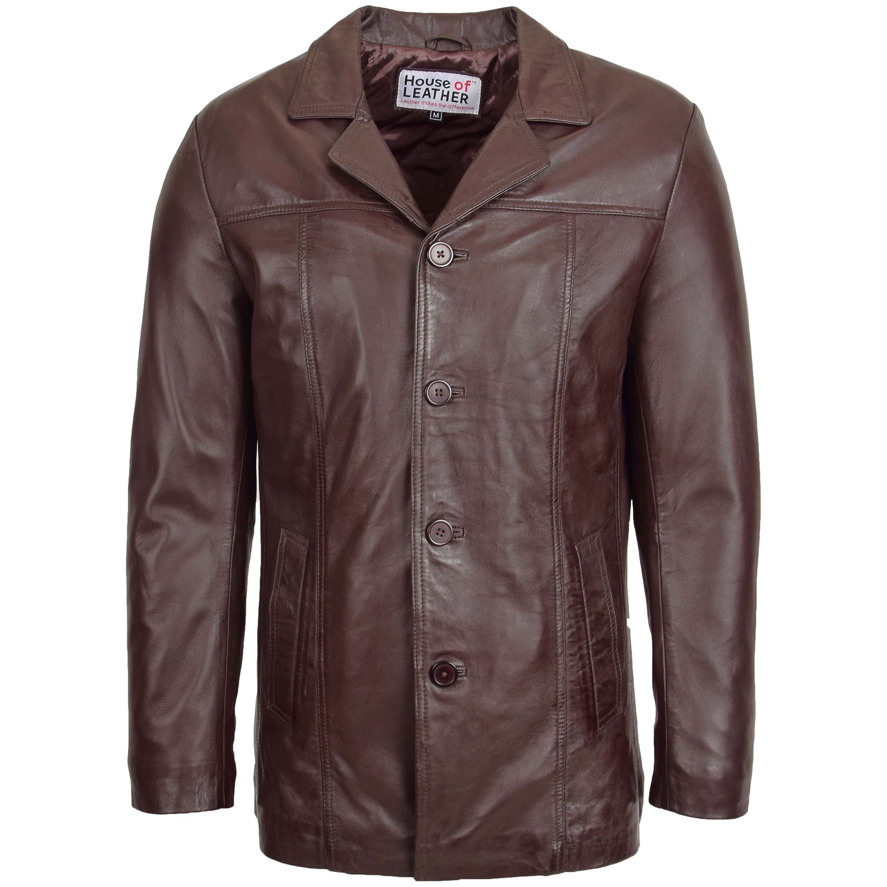 Mens Leather Classic Reefer Jacket Thrill Brown
