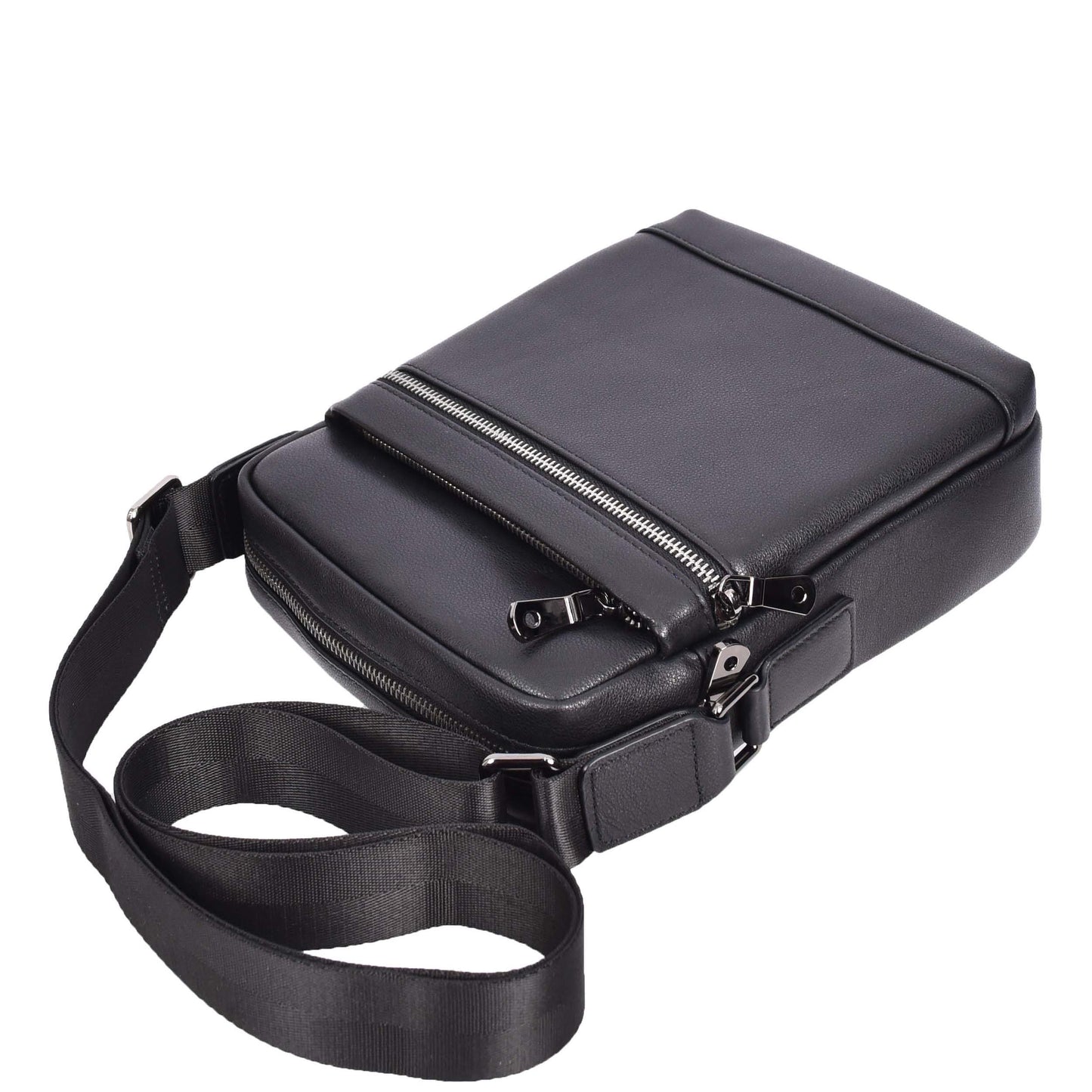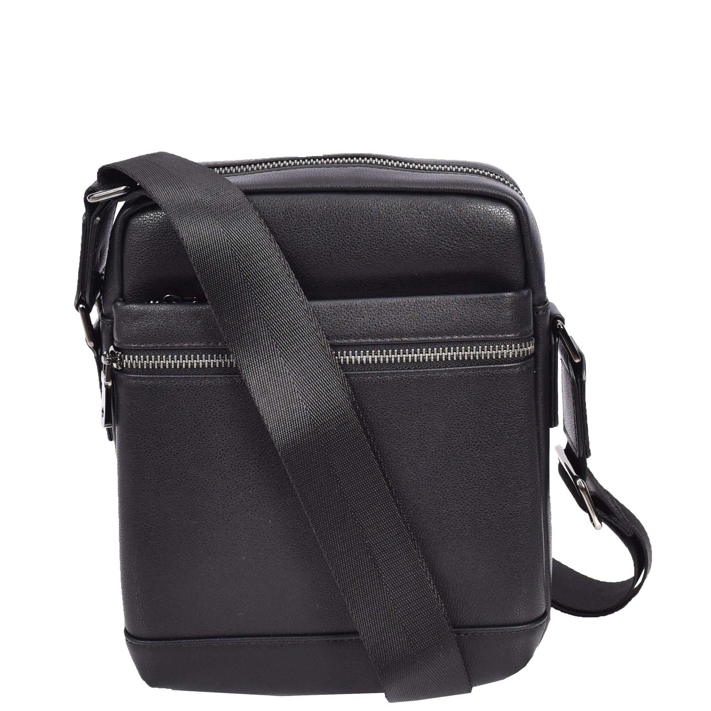 Mens Leather Cross Body Messenger Bag Medium Organiser Travel Pouch Justin Black