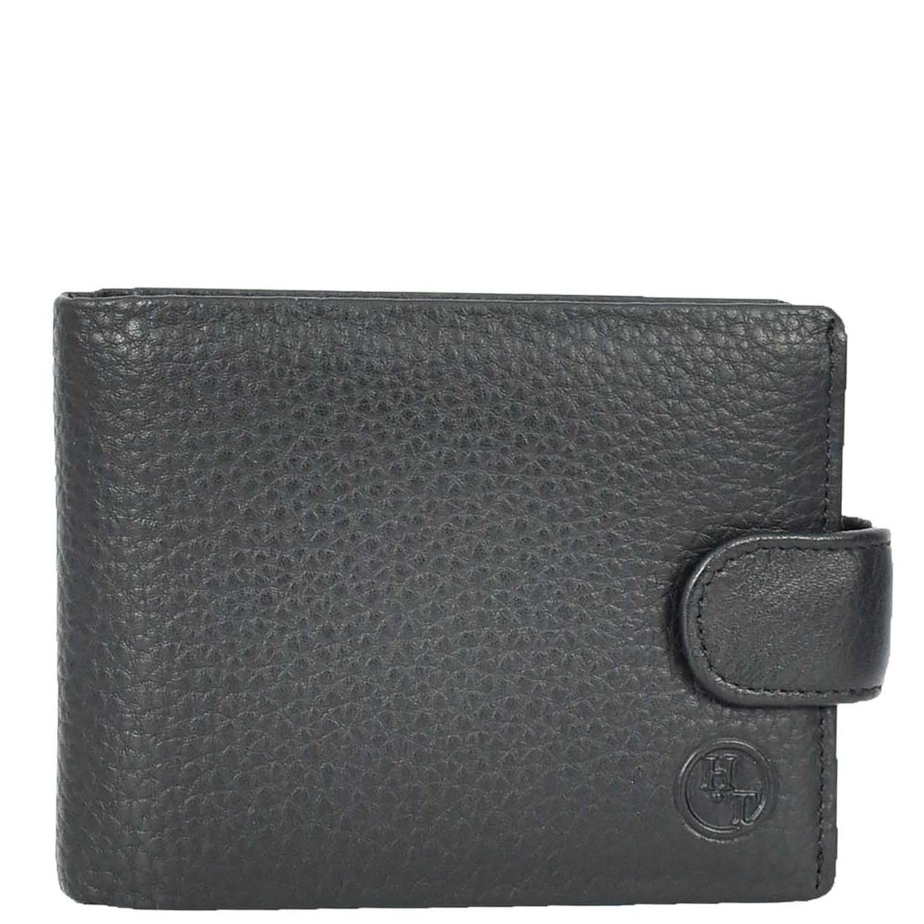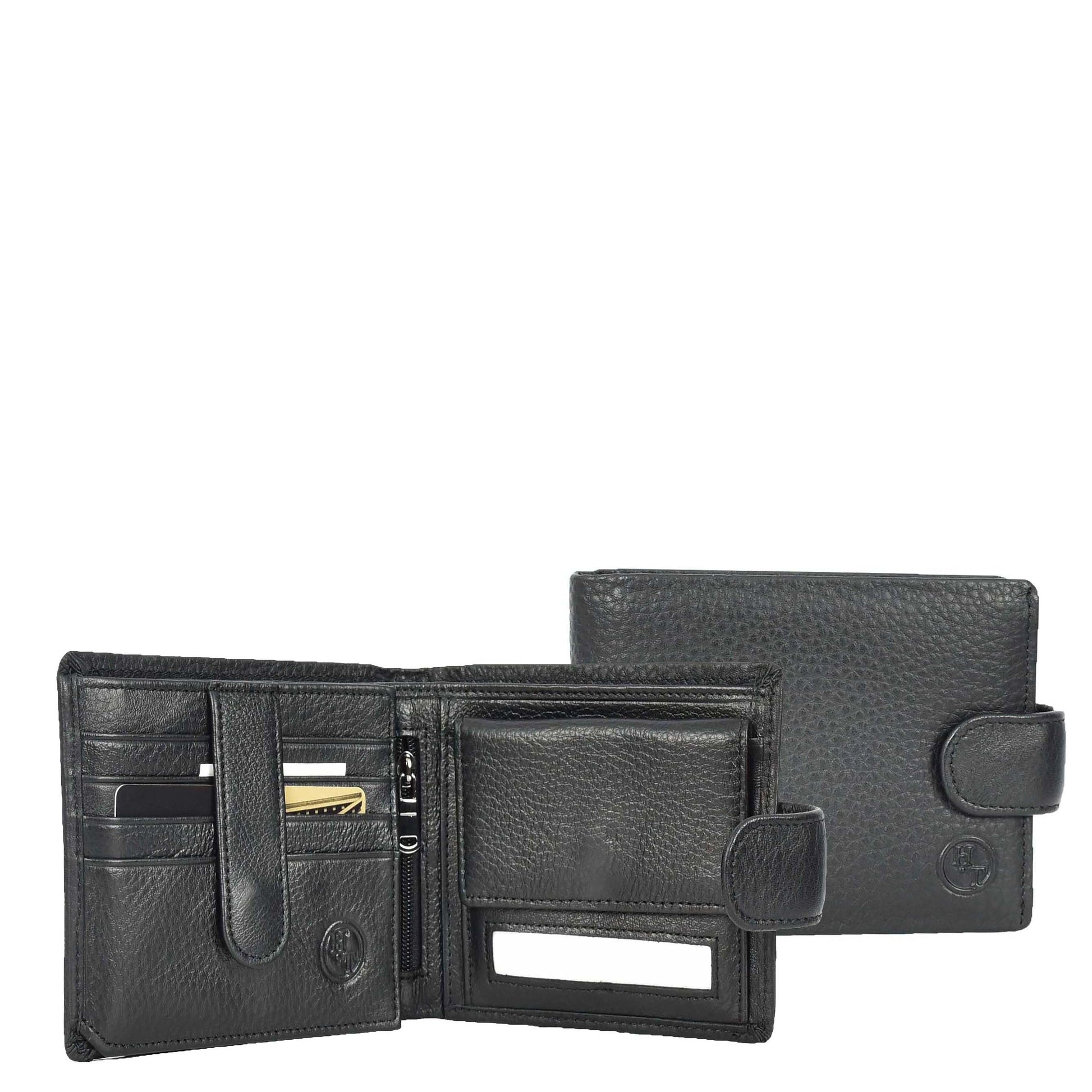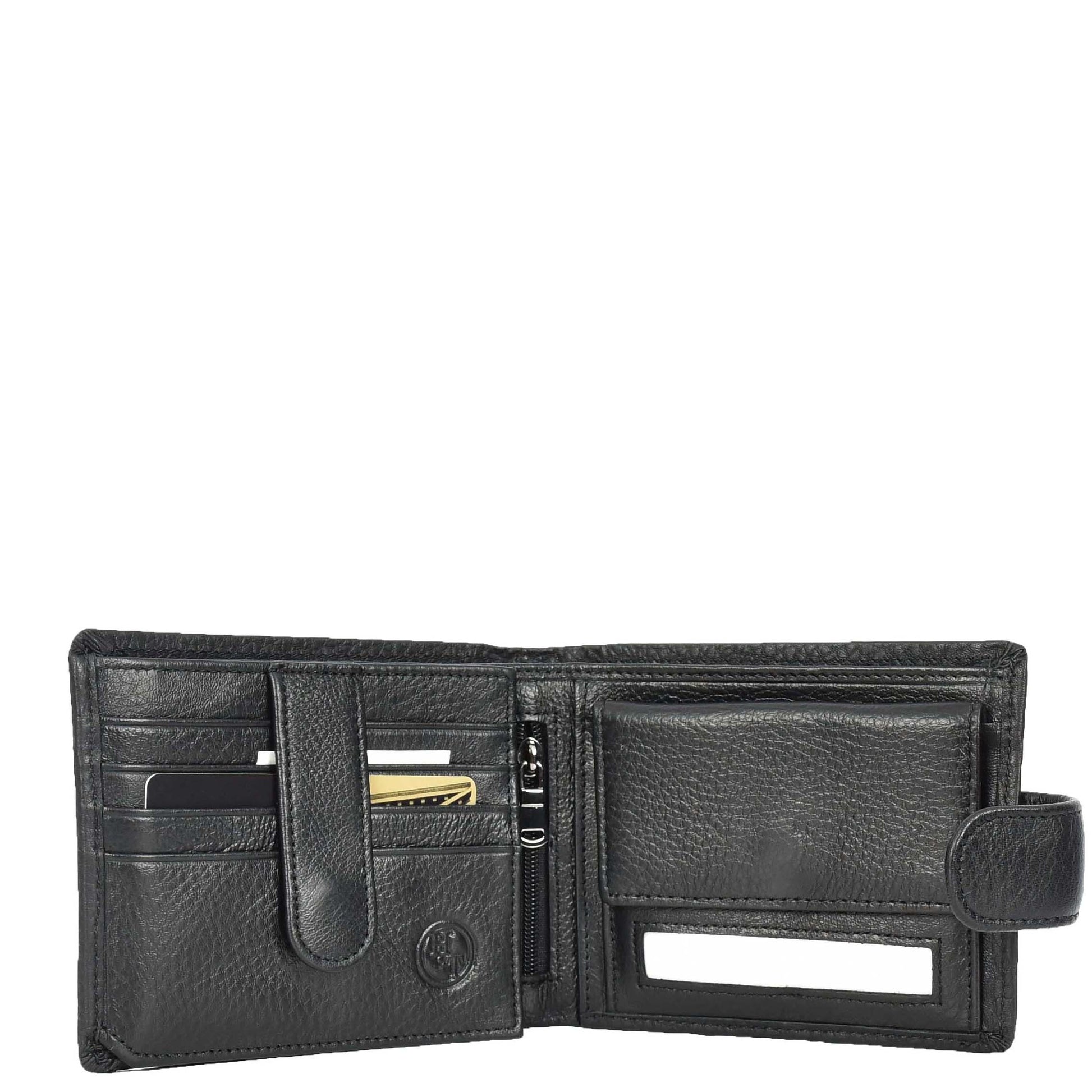 Mens Real Leather Bifold Wallet Banknotes ID Window Card Holder Cairn Black