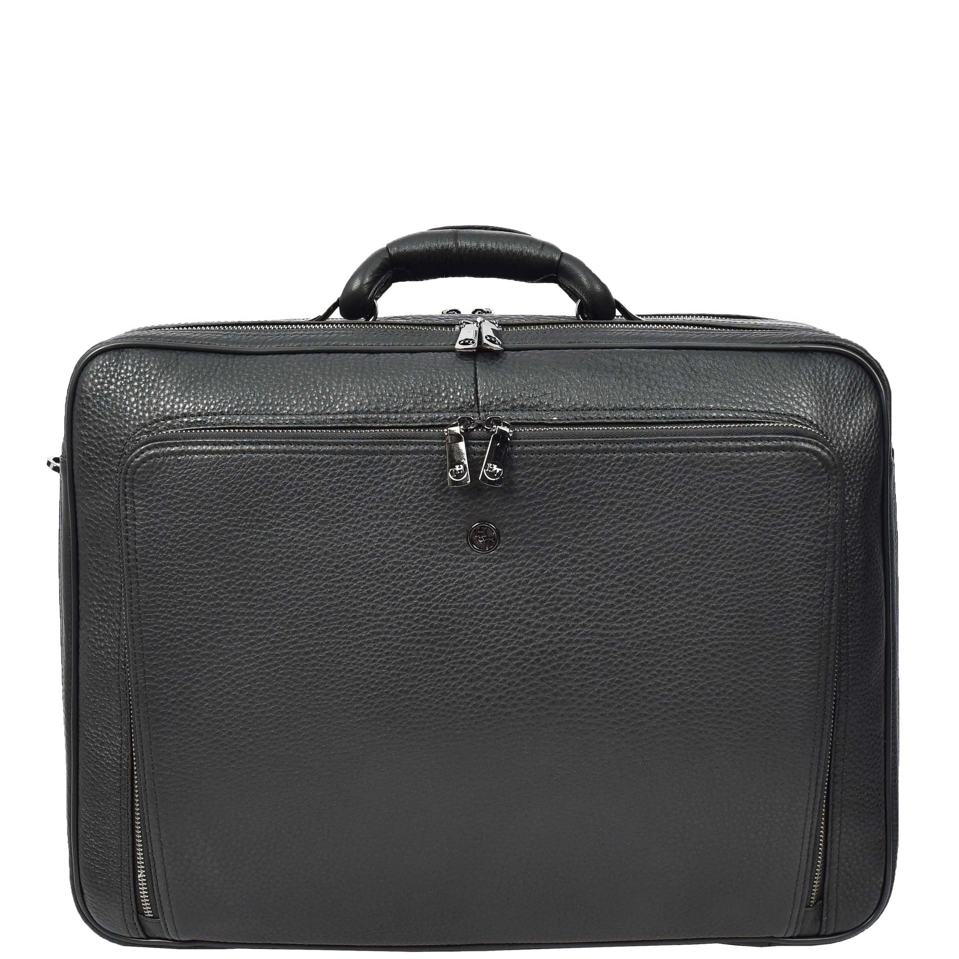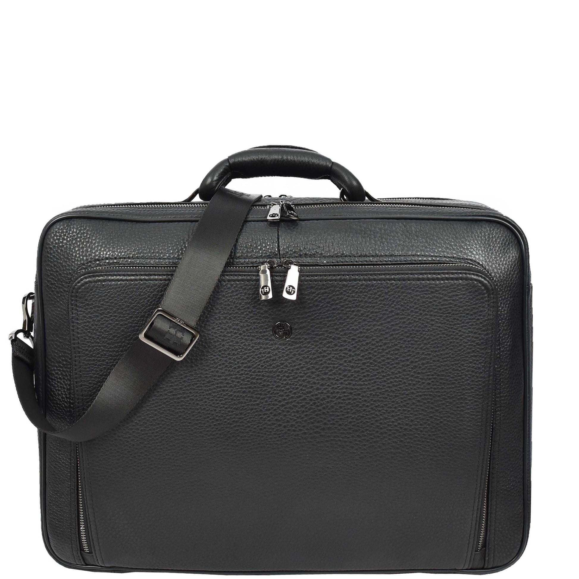 Mens Real Leather Briefcase Style Large Size Work Business Office Travel Bag Terni Black