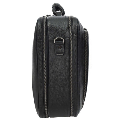 Crafted from premium quality leather with durable metal zippers and polyester lining, this briefcase combines luxury with functionality. this large capacity bag features premium black leather construction with a pebbled texture and sleek silver hardware .