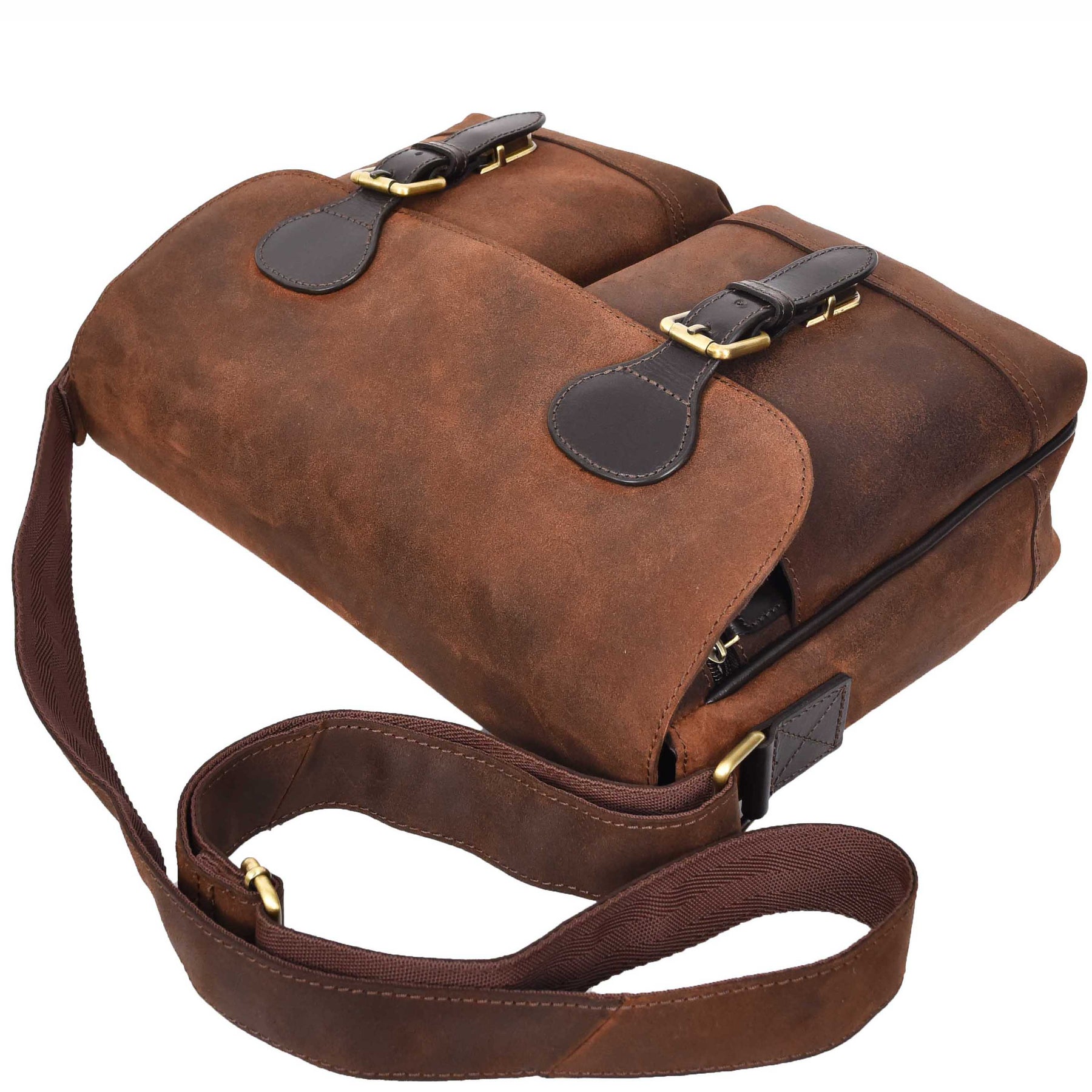Mens Real Leather Laptop Bag Briefcase Vintage Brown Chase 2