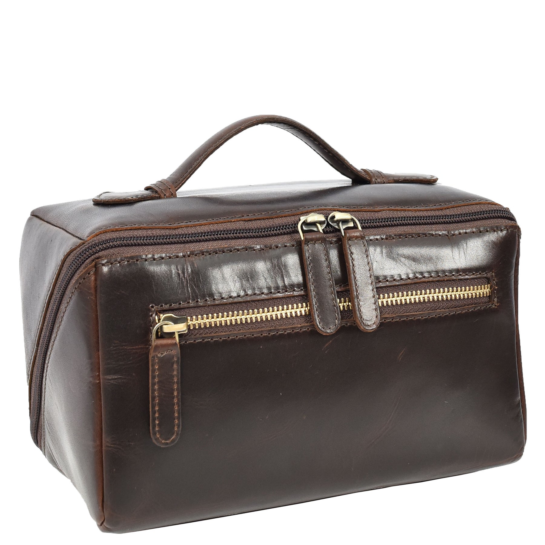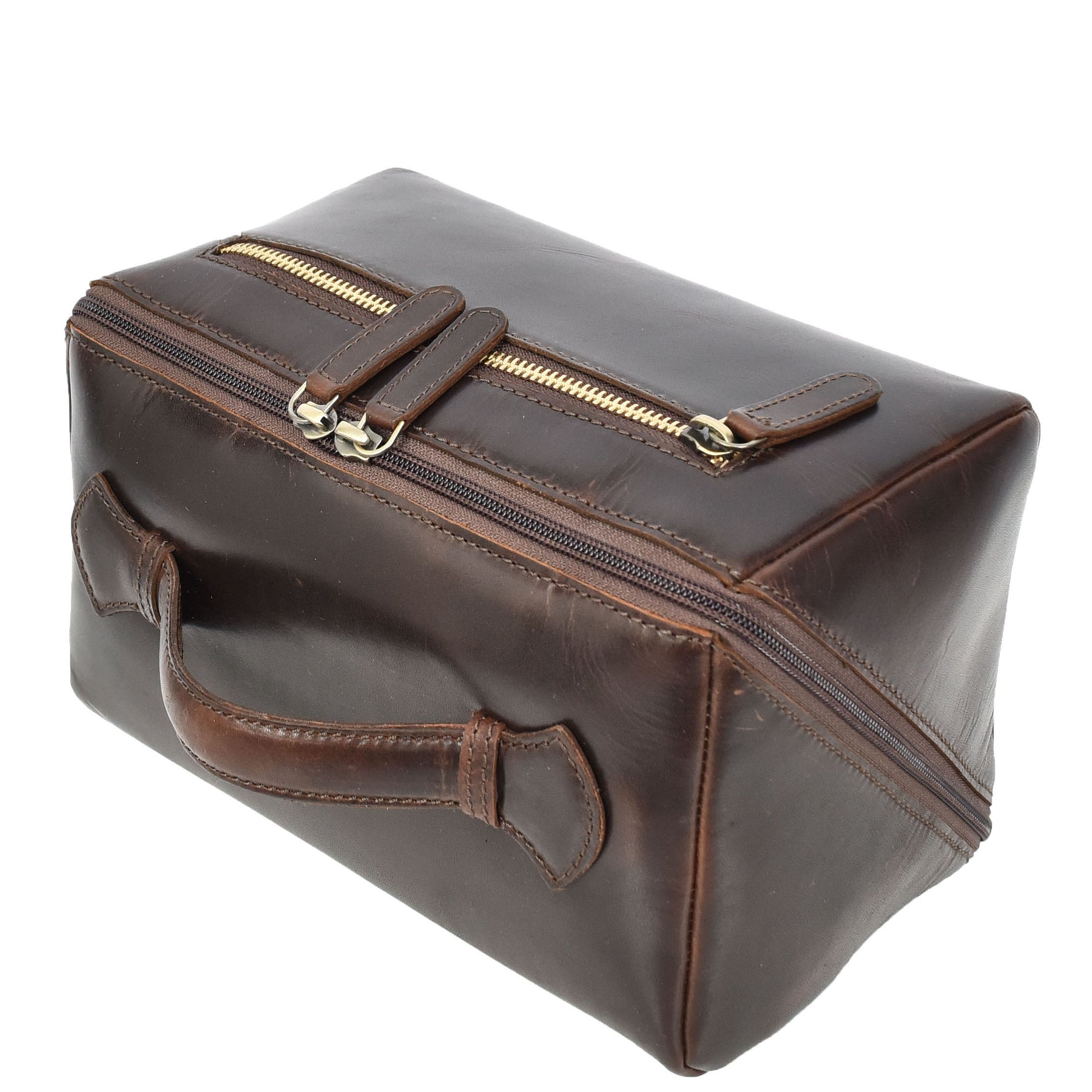 Mens Real Leather Toiletries Wash Shaving Bag Travel Pouch Tripper Brown