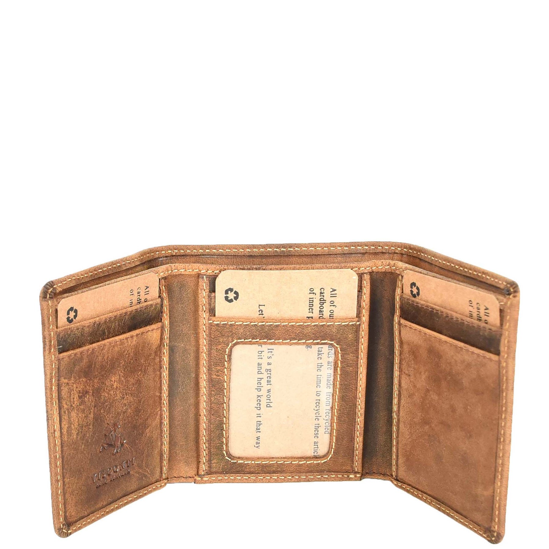 Mens Real Leather Tri-fold Wallet Credit Cards Banknotes ID Card RFID Blocking HOL700 Oil Tan
