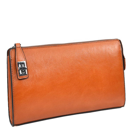 Mens Real Leather Wrist Bag Large Size Clutch Organiser Style Goma Tan