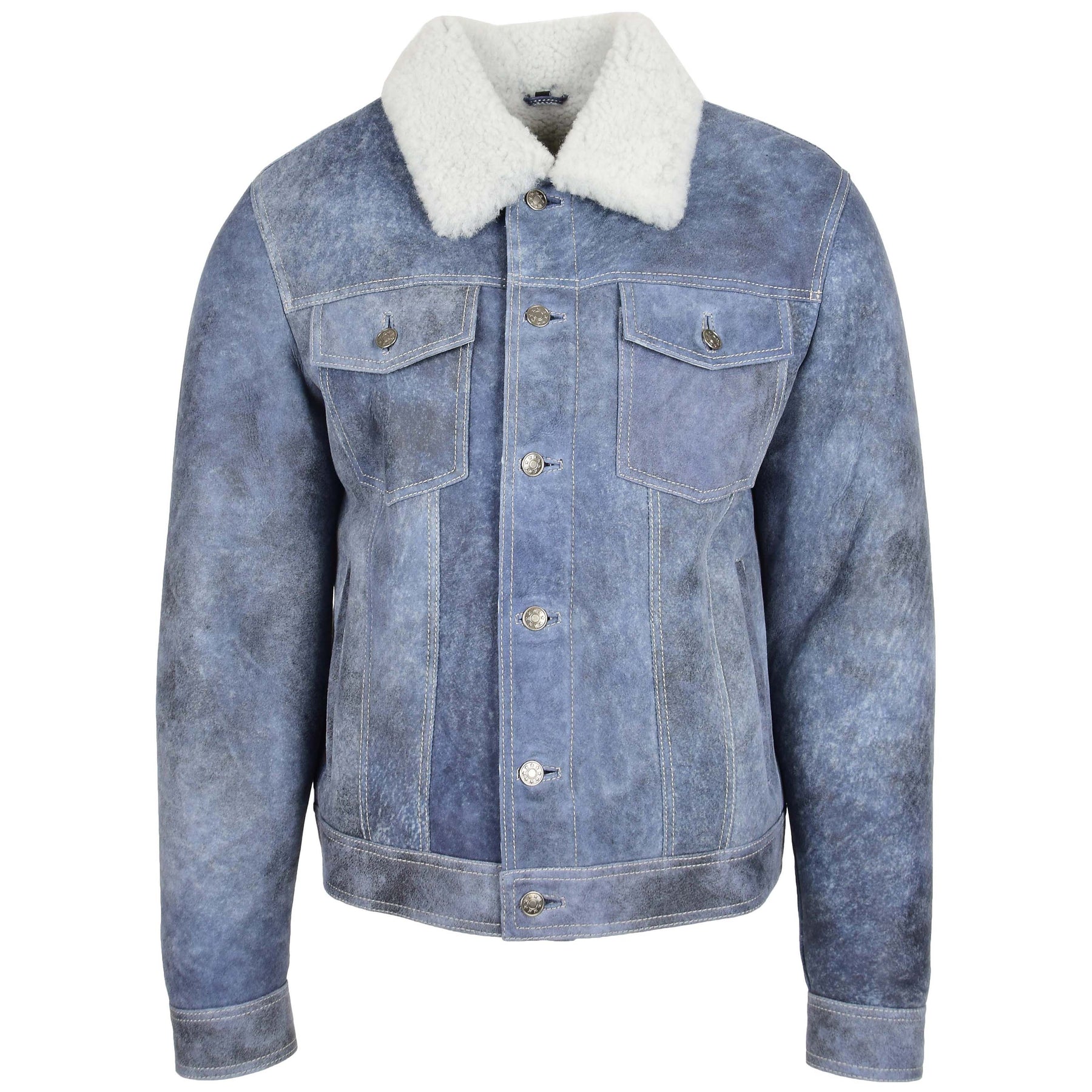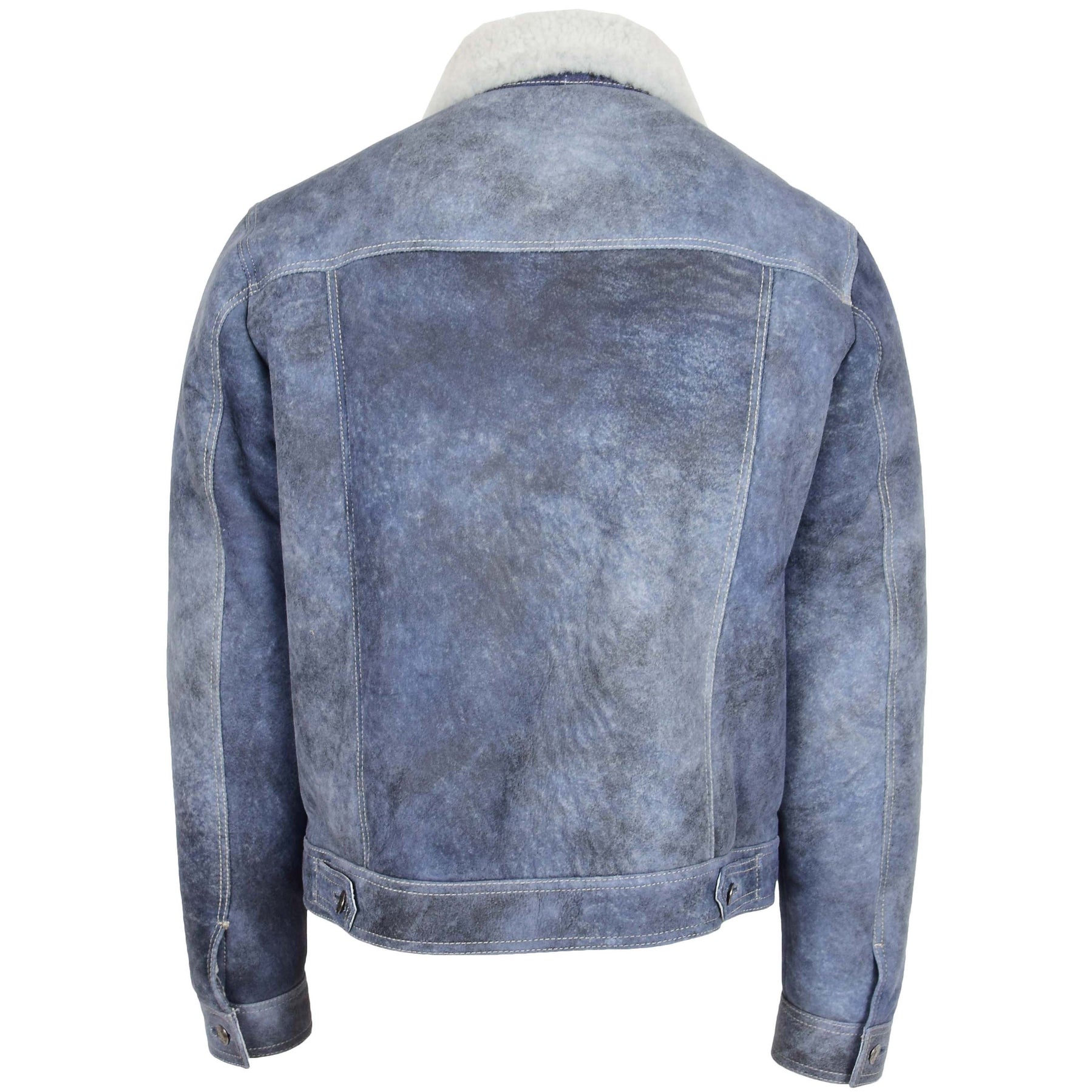 Mens Real Sheepskin Trucker Jacket Noah Denim Blue
