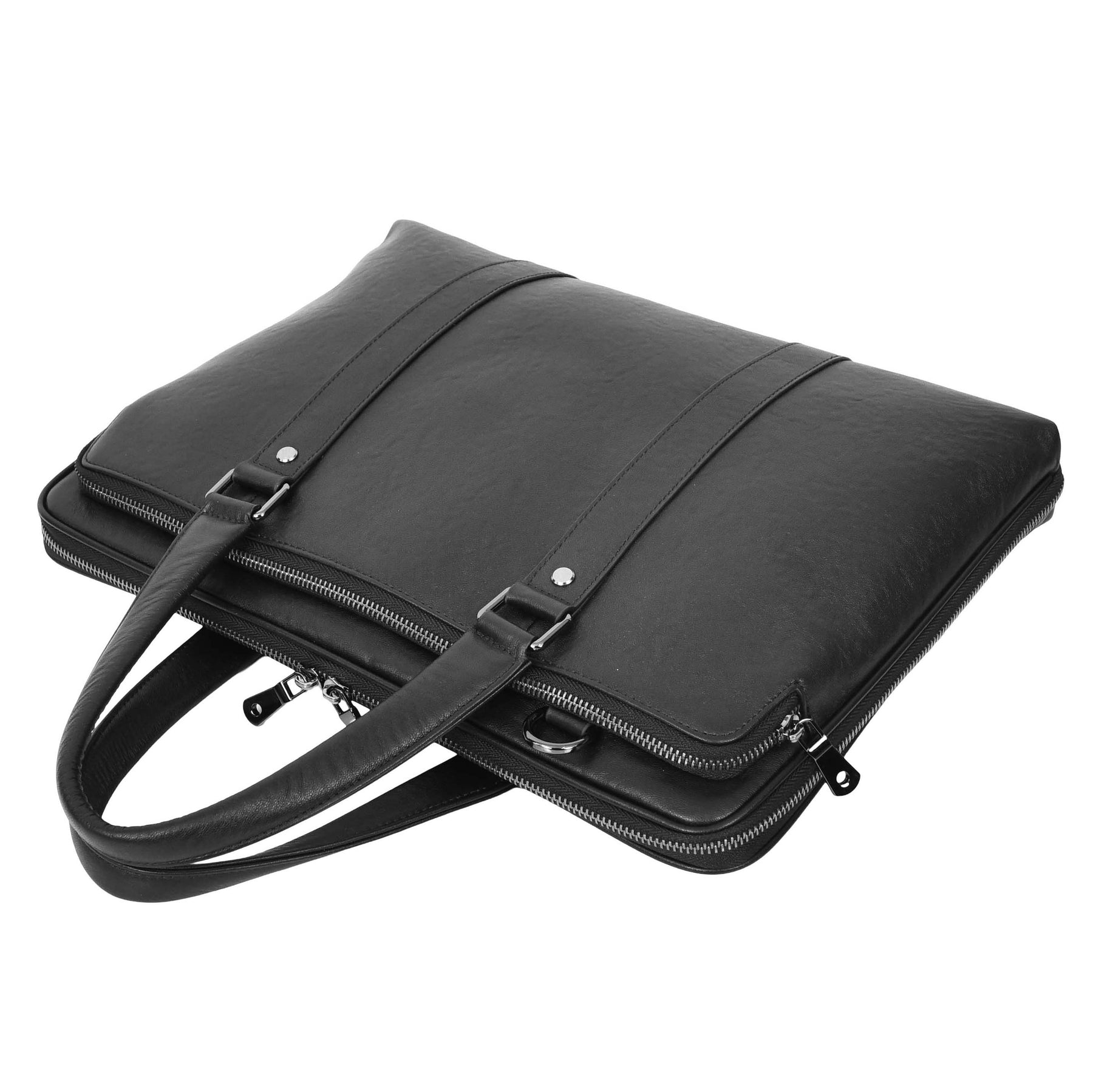 Upgrade your professional gear with our Slim Modern Briefcase, meticulously crafted from premium leather and high-quality metal hardware. This briefcase combines contemporary style with practical features, making it the perfect accessory for the modern professional. It features two top carry handles, detachable shoulder strap, front zip pocket. The main zip around opening is gusseted and has a middle zip divider section, slots for a mobile phone + pens and a further separate zip pocket.