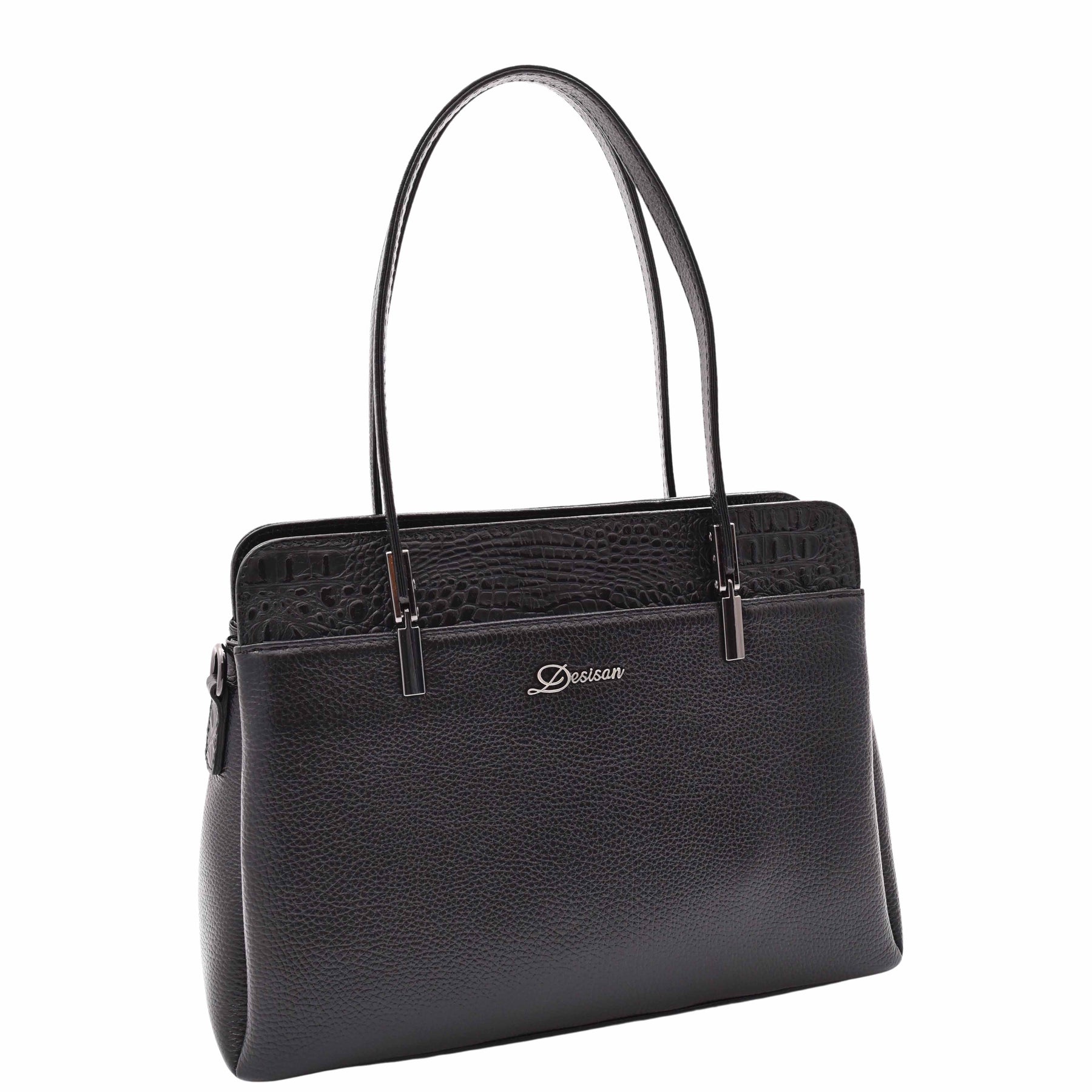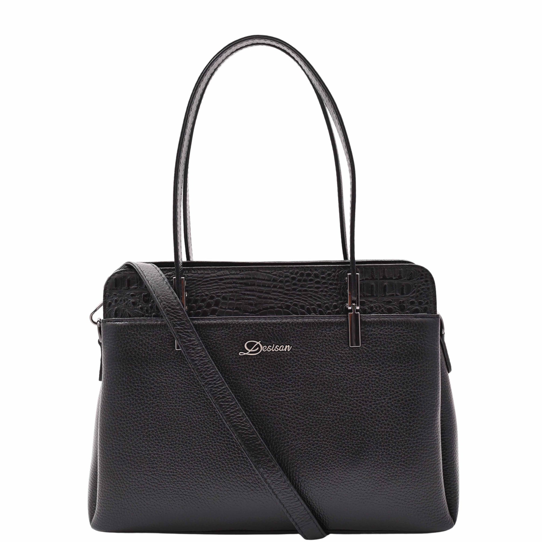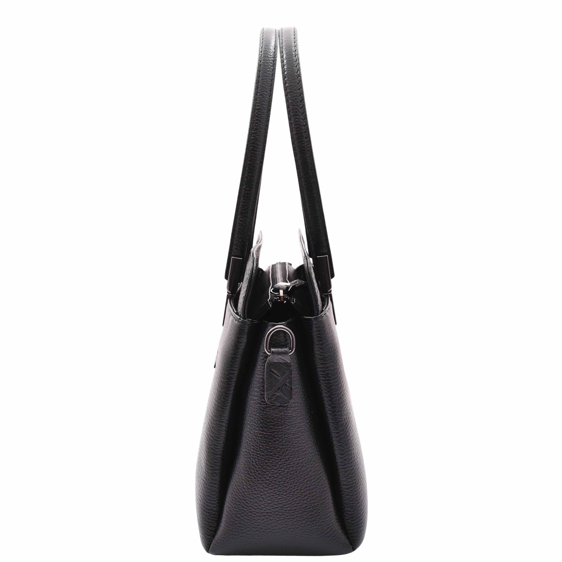 Real Leather Elegant Tote Zip Medium Shoulder Bag Edna Black