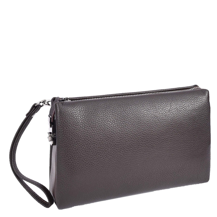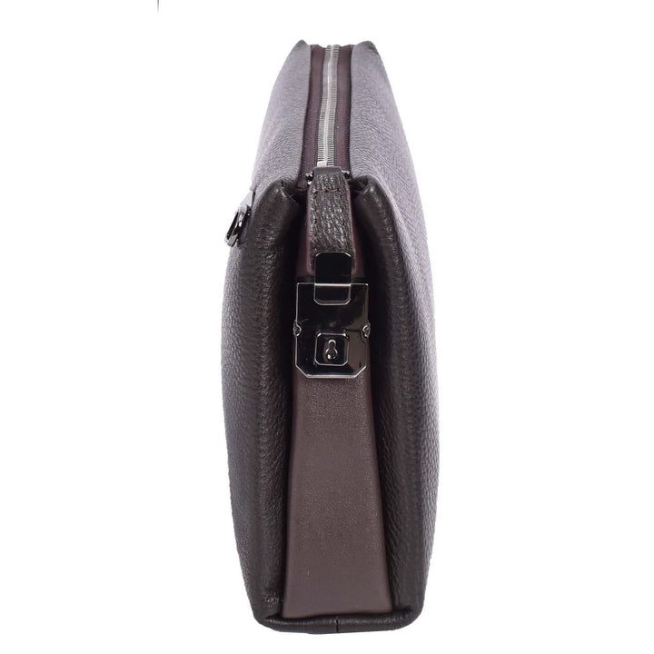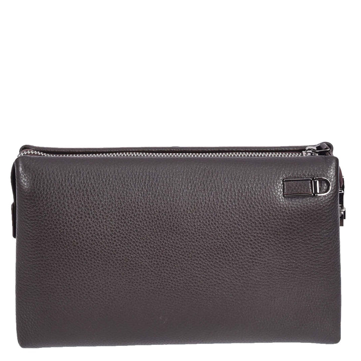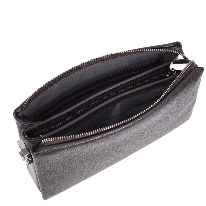 Elevate your accessory game with our Men's Premium Leather Wrist Bag, designed for the modern man who values both style and security. Crafted from high-quality leather, this wrist bag boasts a sleek and understated design, making it the perfect companion for your daily essentials. It features a detachable wrist strap and a built on 2-digit combination zip locked main compartment. Inside there is a middle zip divider section and slots for cards.
