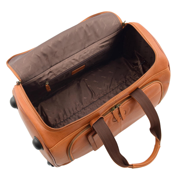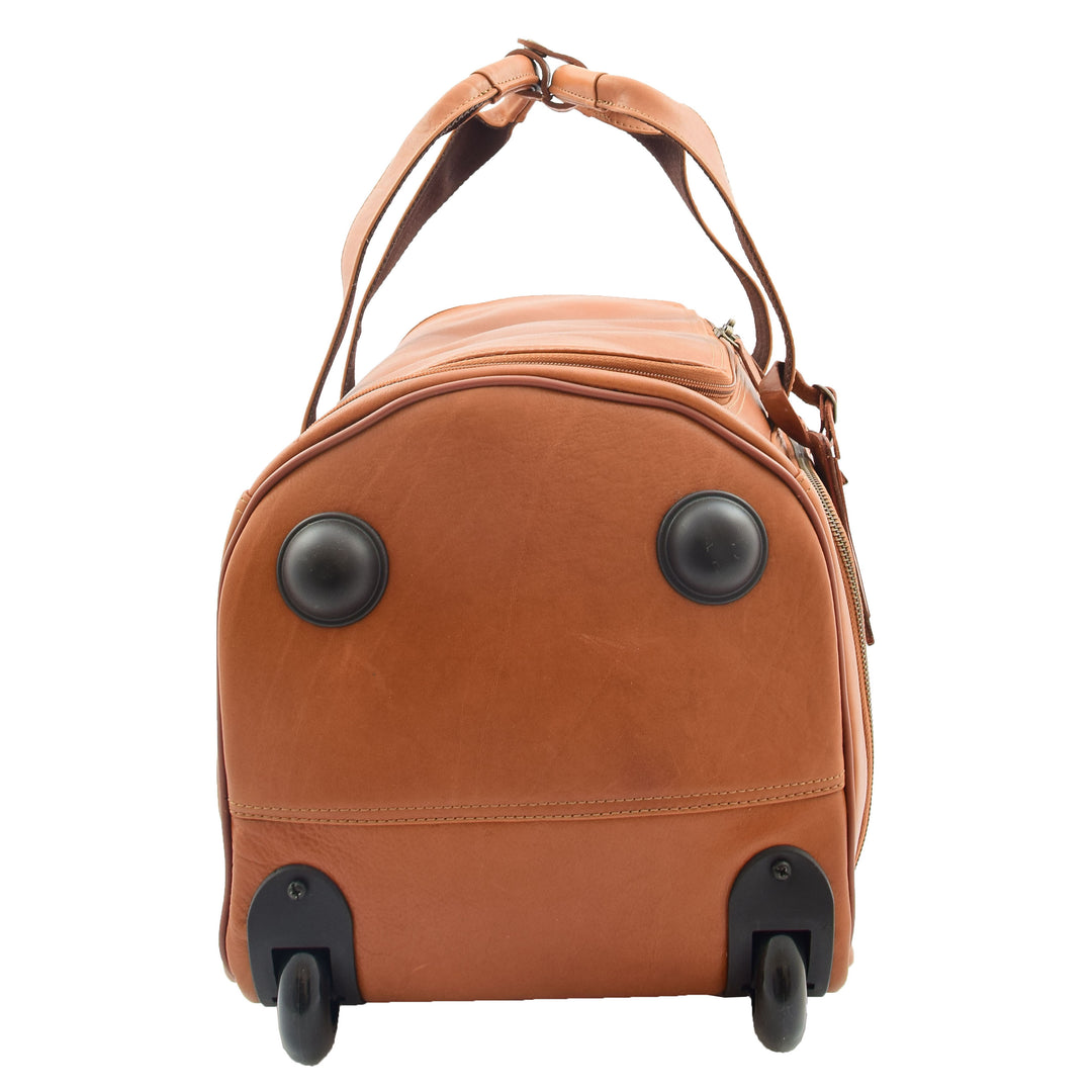 Real Leather Wheeled Holdall Duffle Bag Combrew Tan