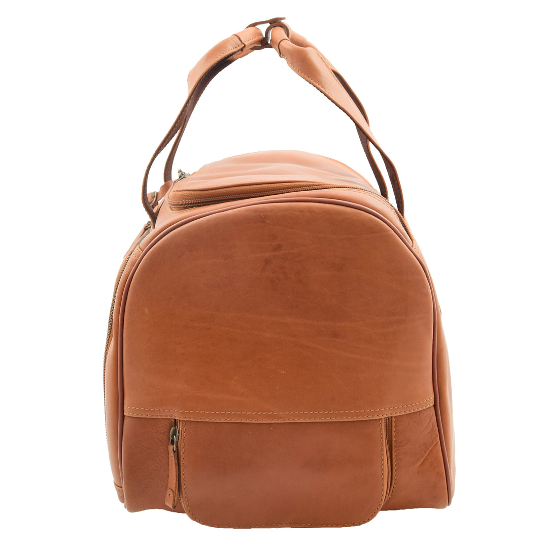 Roomy and easy to carry, this holdall is the perfect travel companion designed to last a lifetime. Made from premium grade leather and complete with high quality metal hardware and zippers. It features two grab handles with a 25 cm drop, two outer zip pockets and a removable address tag. There is a large D shape zip opening for the main compartment and it has one zip pocket.