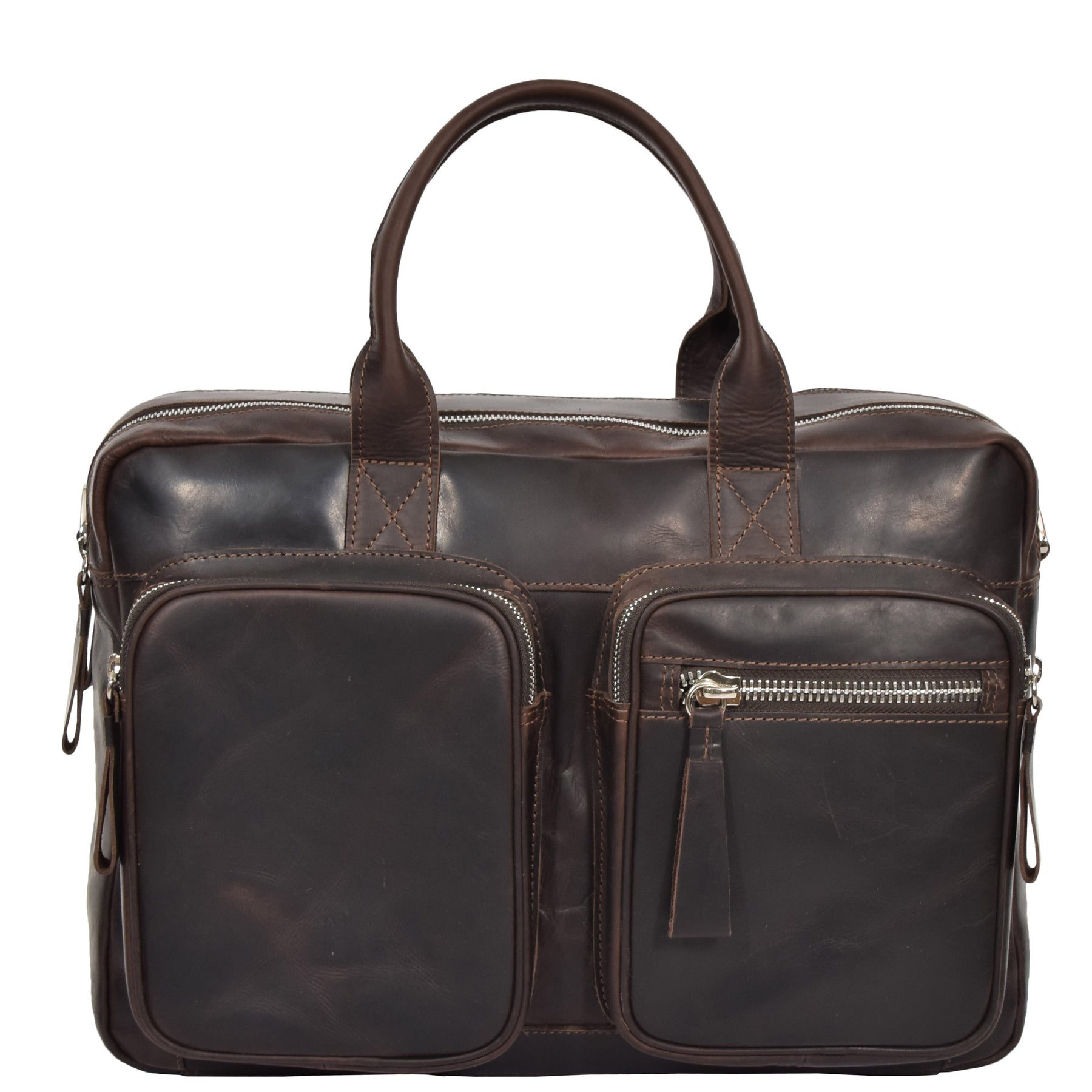 Mens Vintage Leather Organiser Briefcase Mason Brown