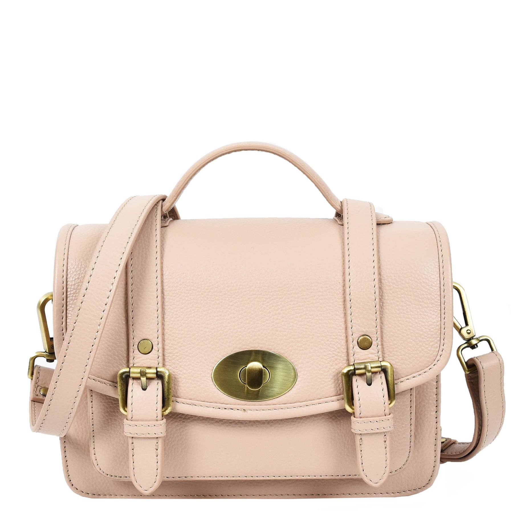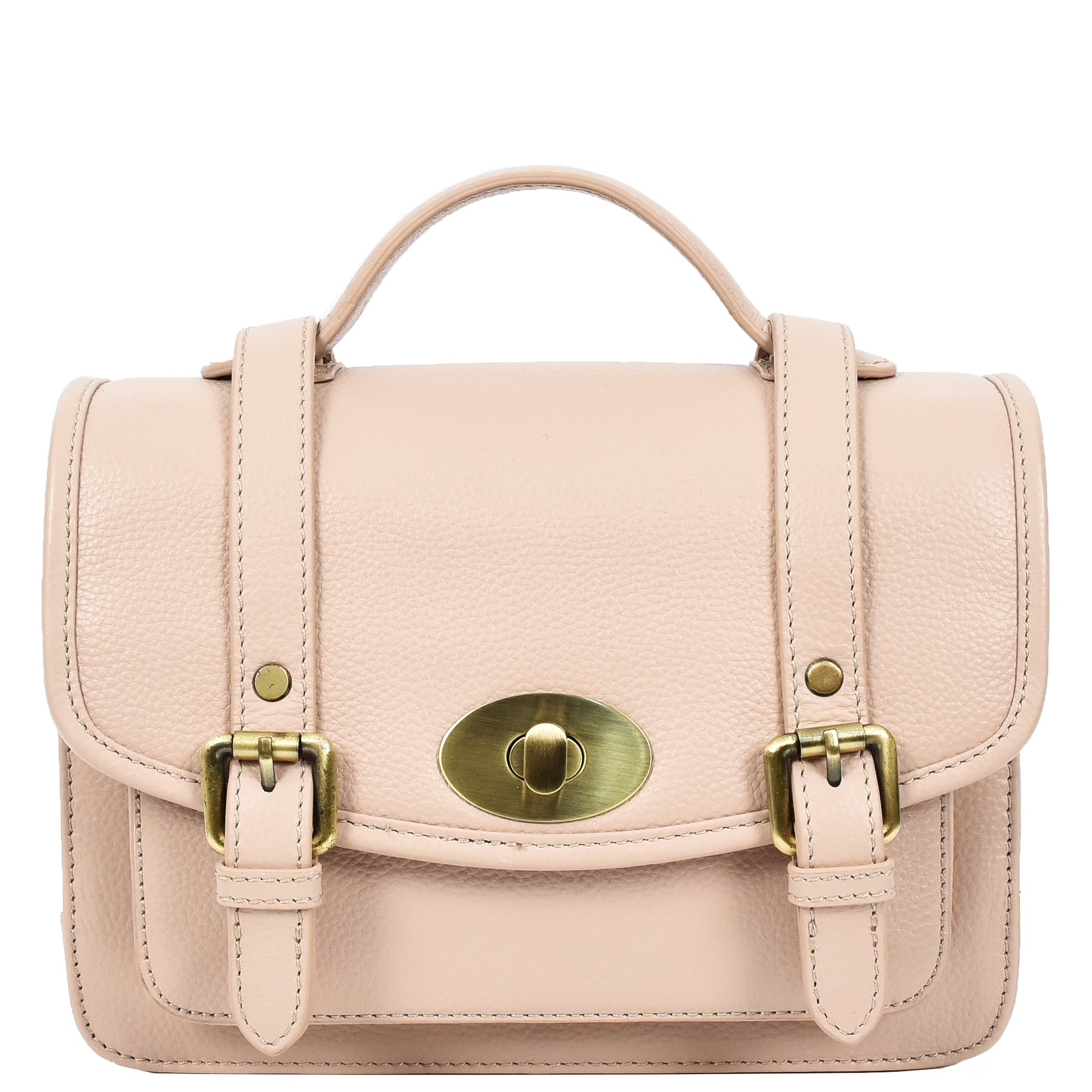 Vintage Style Womens Satchel Handbag Real Leather Crossbody Purse with Buckles Roxy Beige