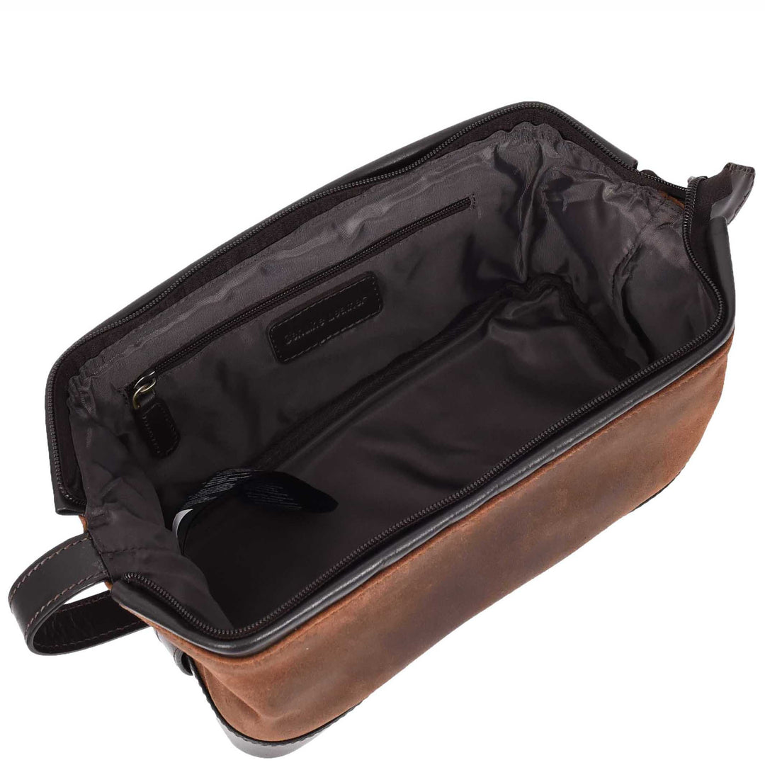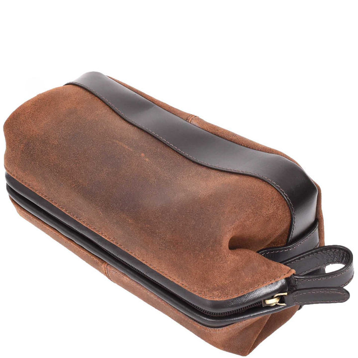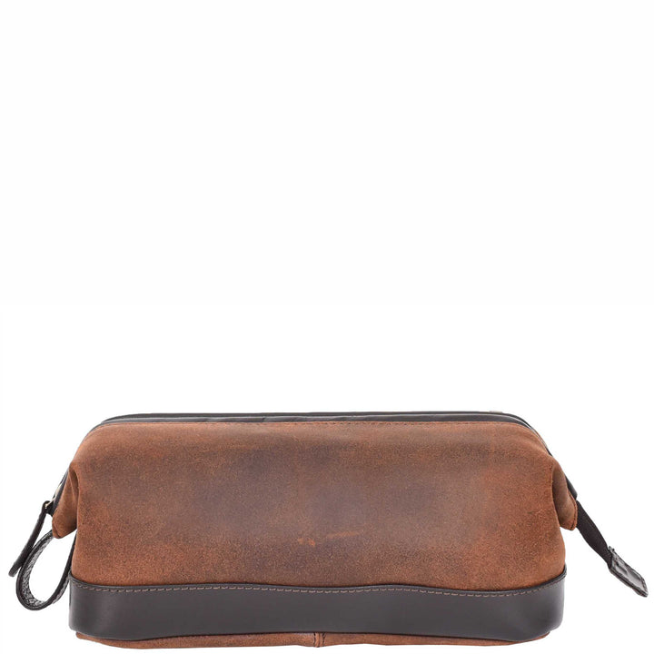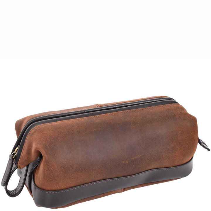 Vintage Toiletry Wash Bag Leather Travel Shaving Kit Cash Brown