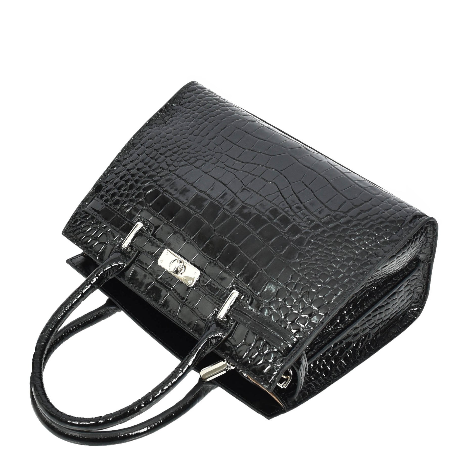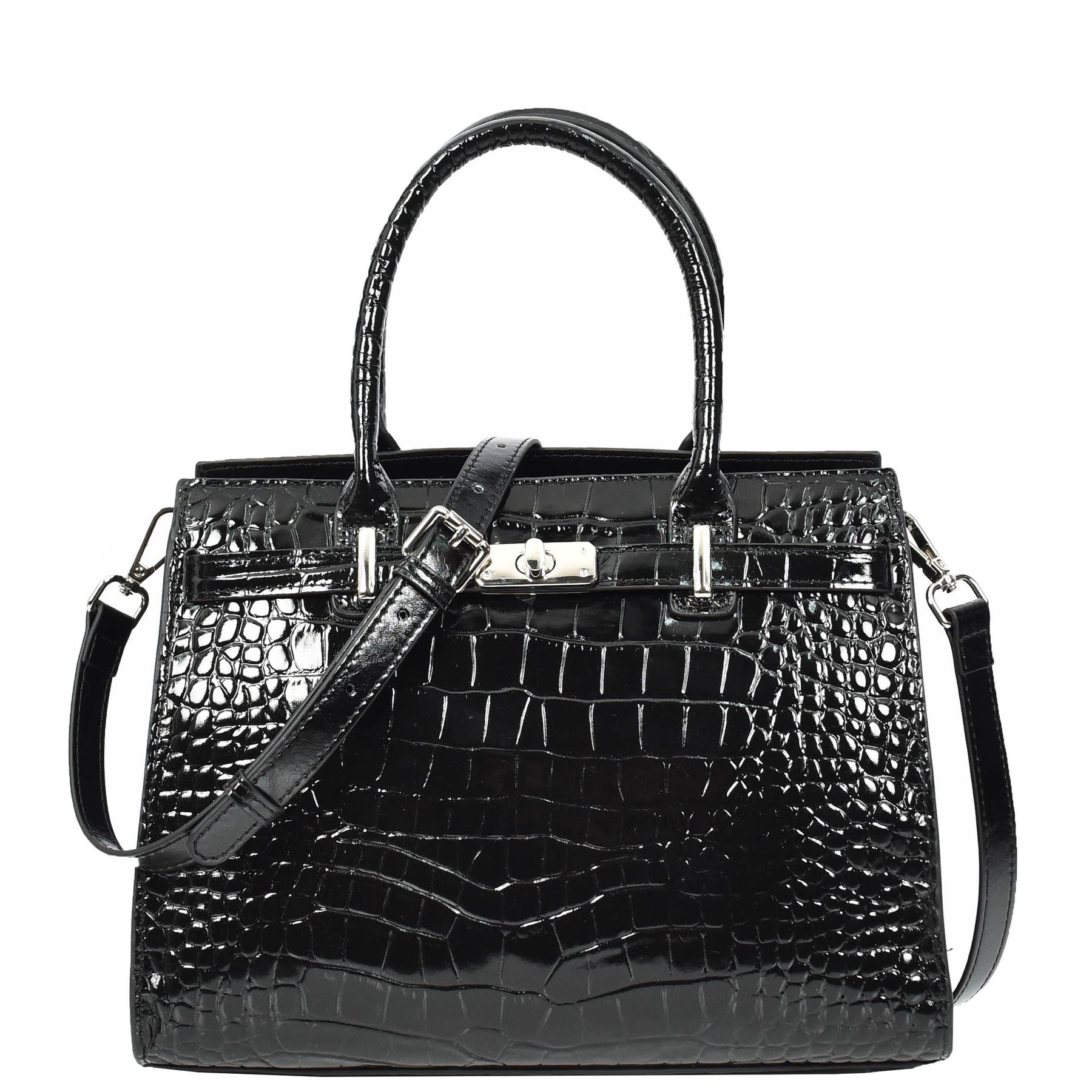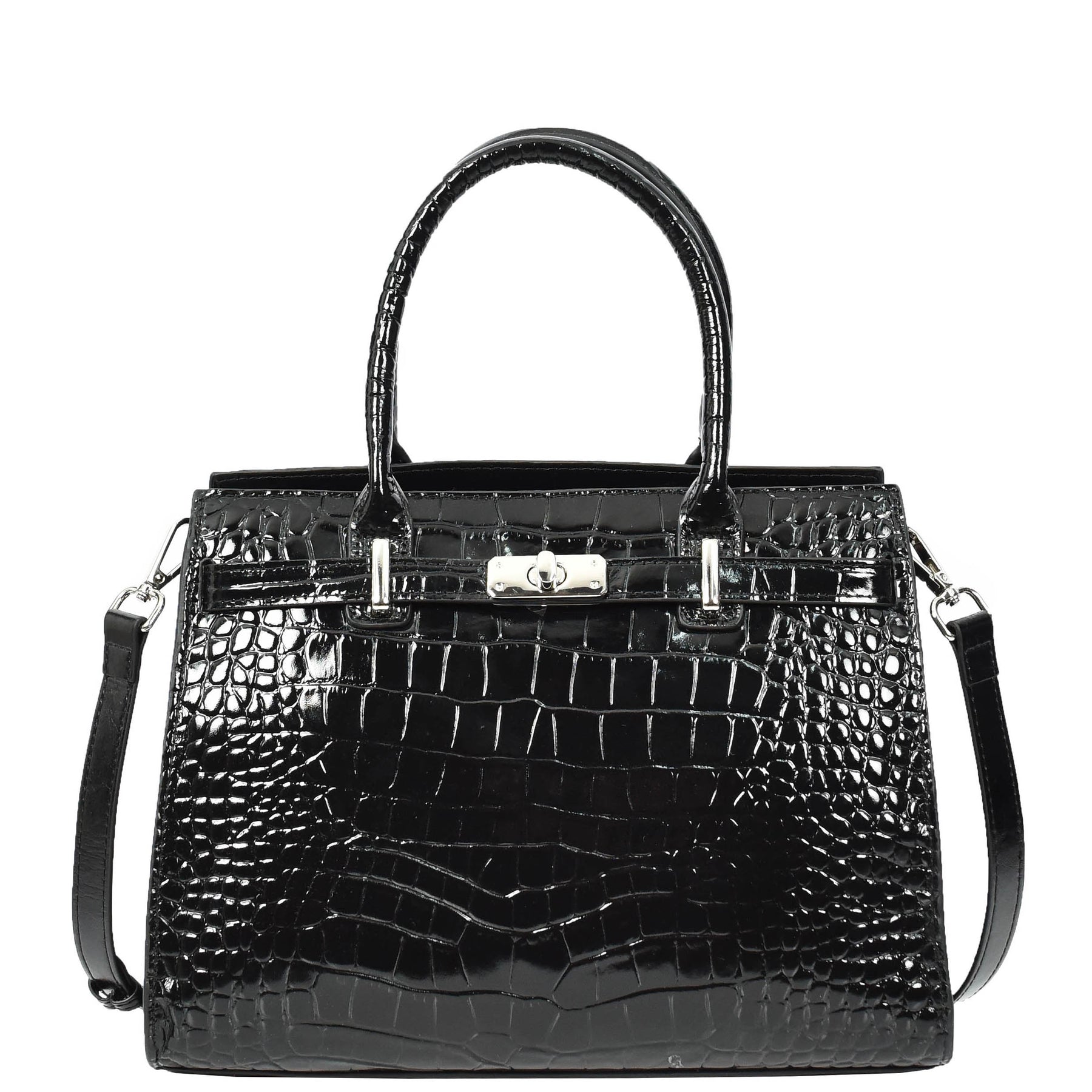 Crafted from premium quality leather, this sophisticated top-handle bag features a striking embossed pattern that adds a touch of refined elegance.