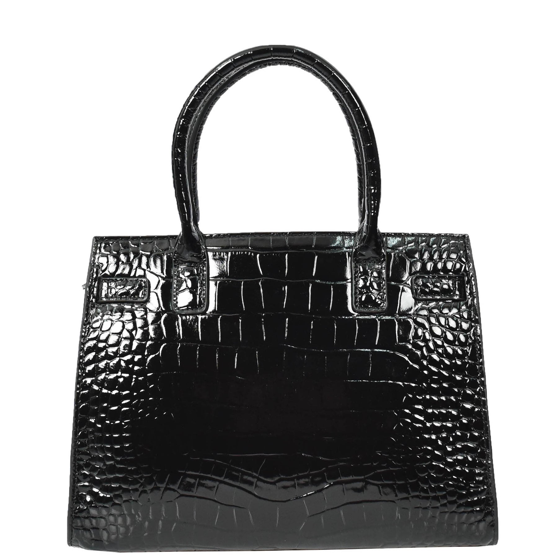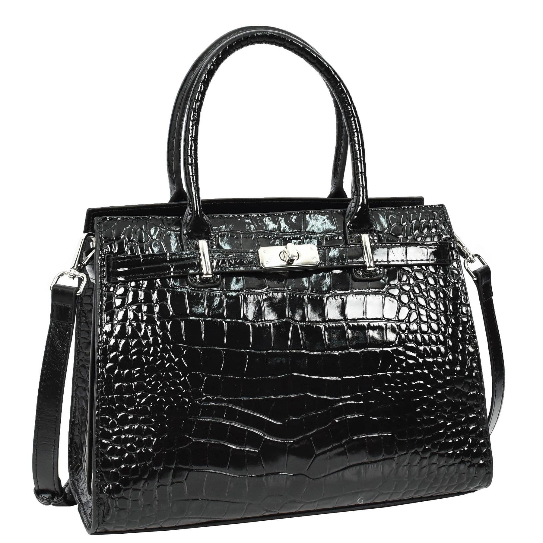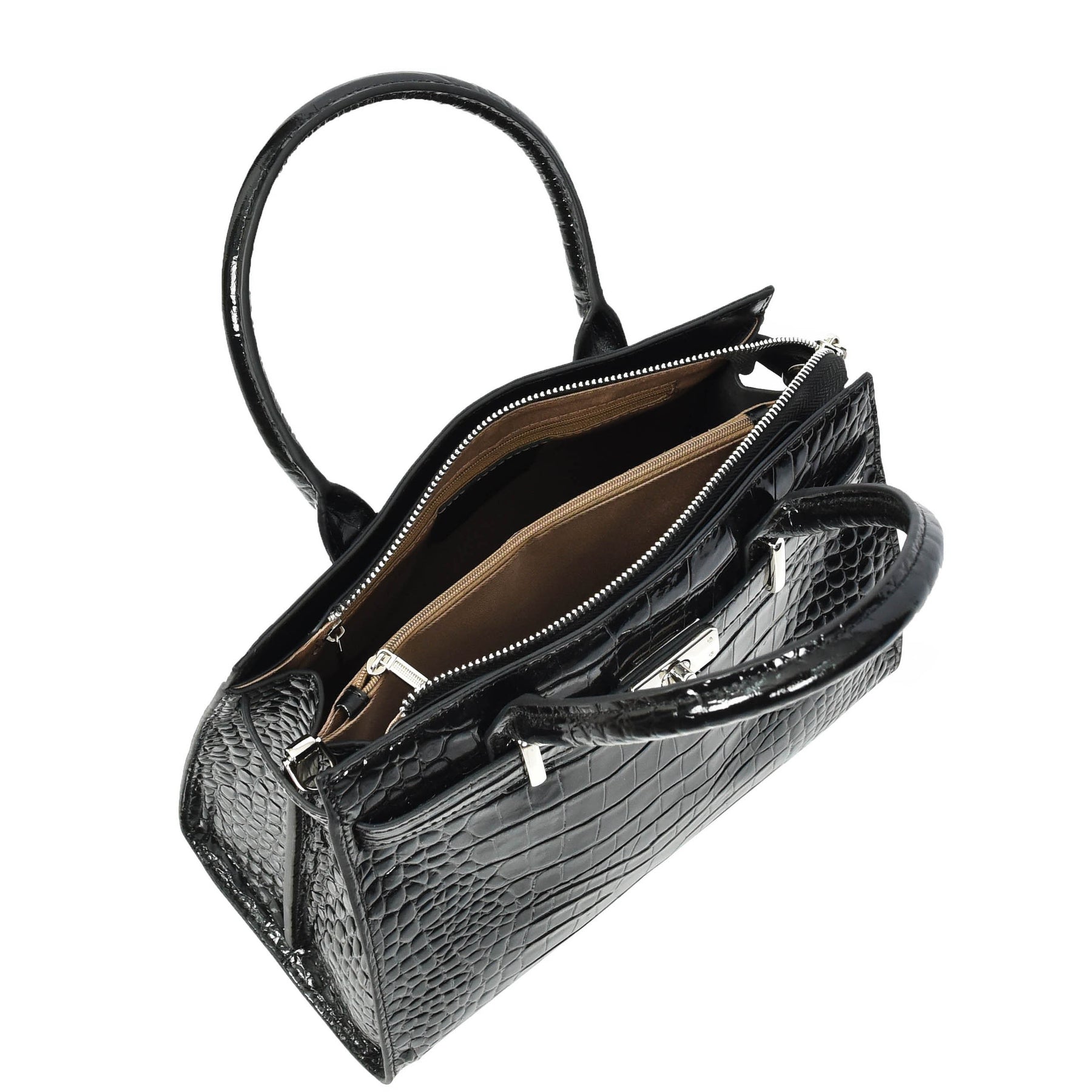 Crafted from premium quality leather, this sophisticated top-handle bag features a striking embossed pattern that adds a touch of refined elegance.
