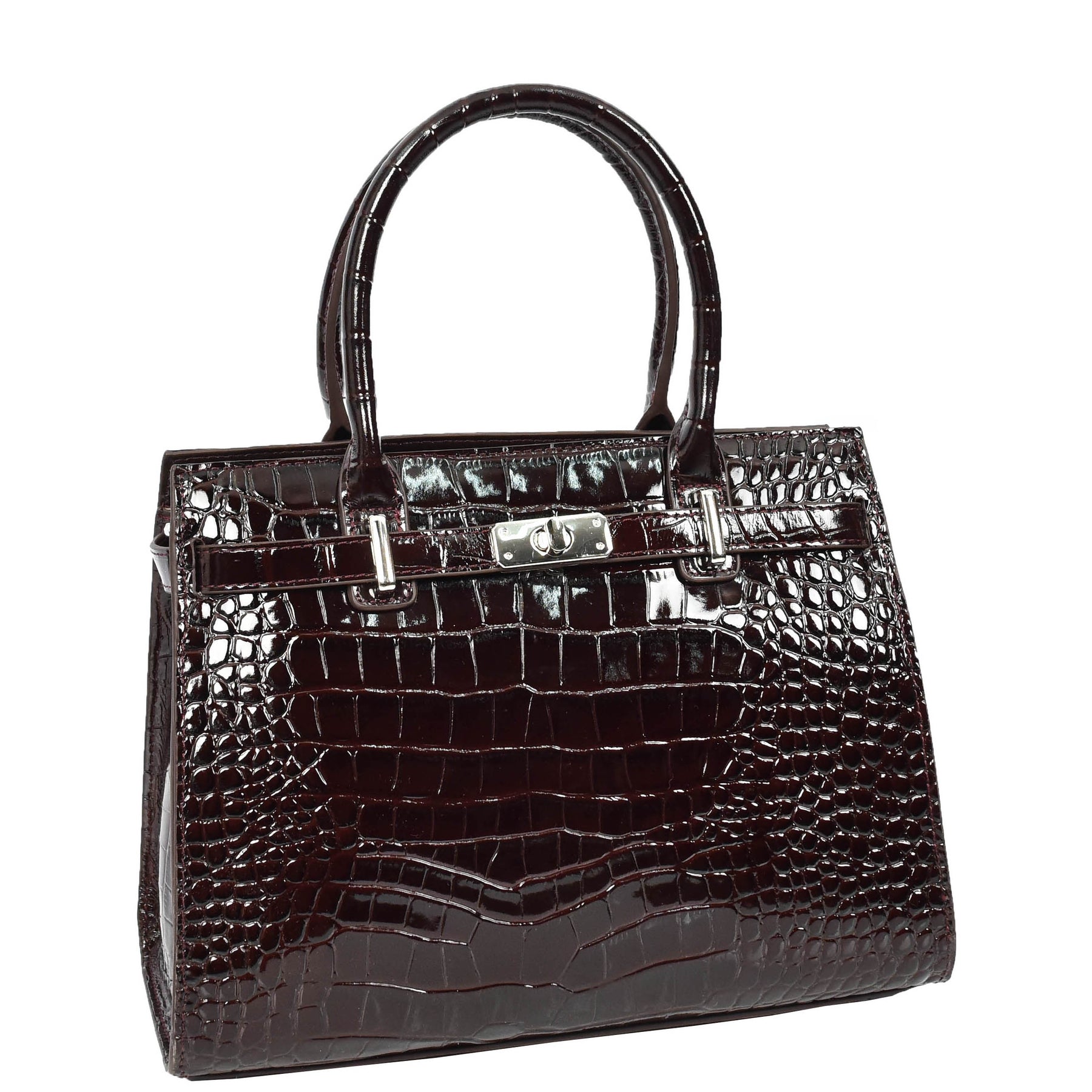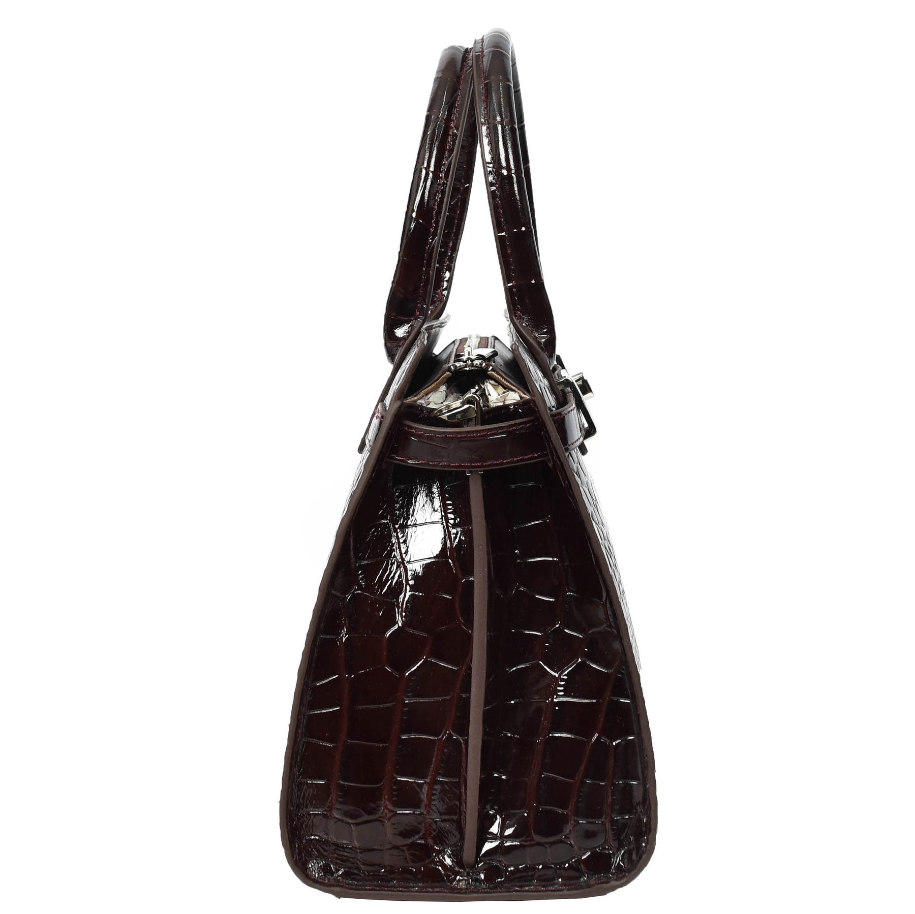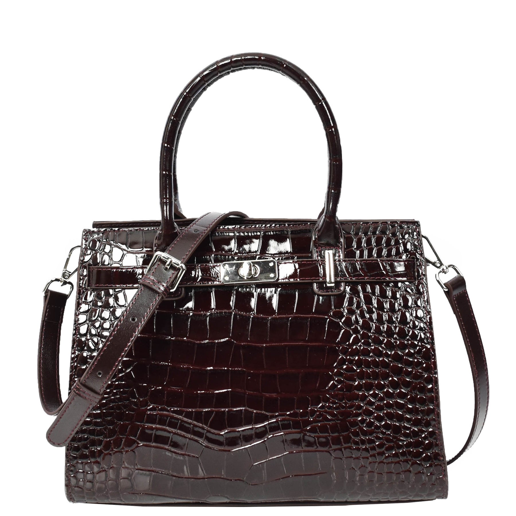 Crafted from premium quality leather, this sophisticated top-handle bag features a striking embossed pattern that adds a touch of refined elegance.