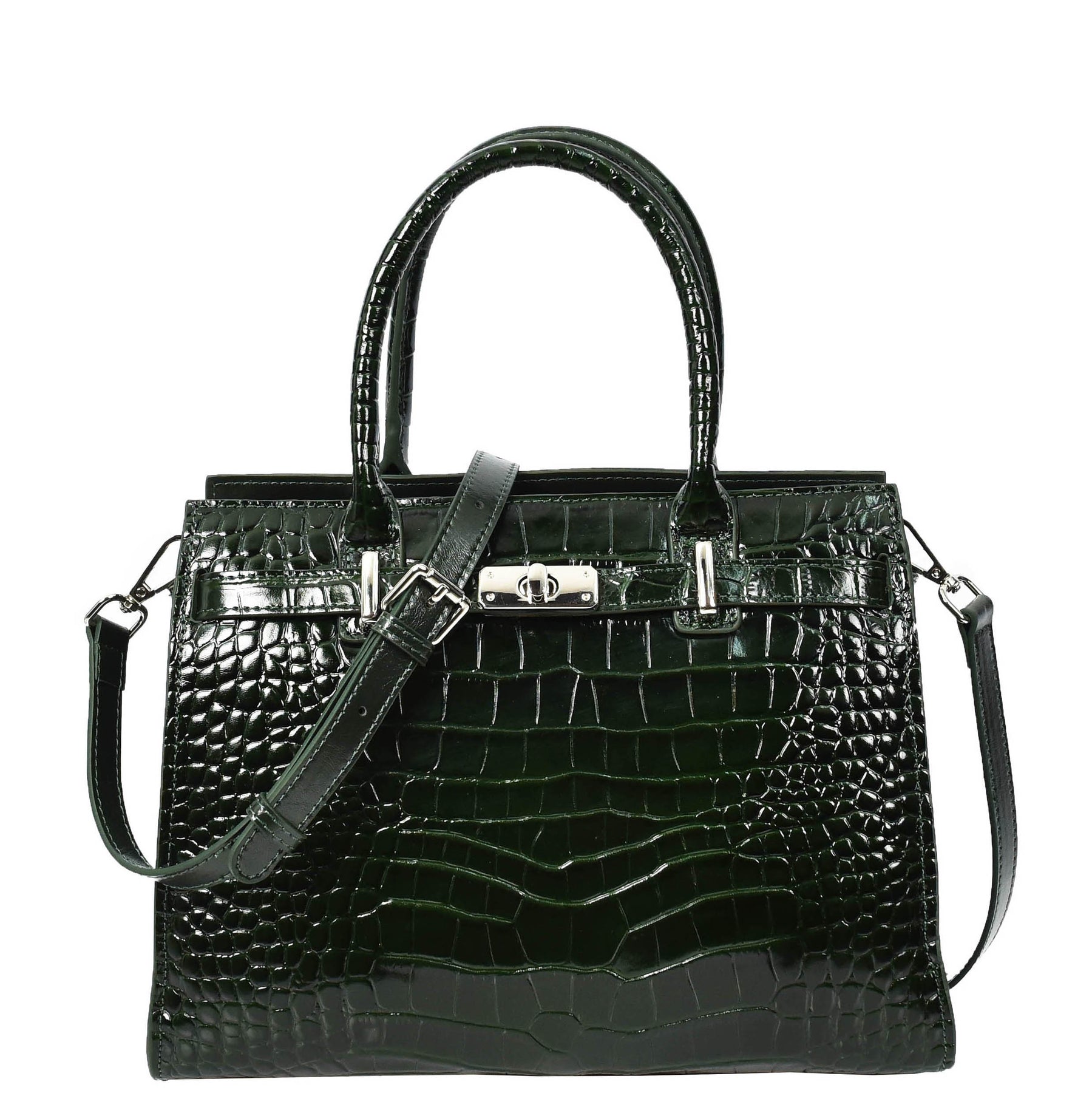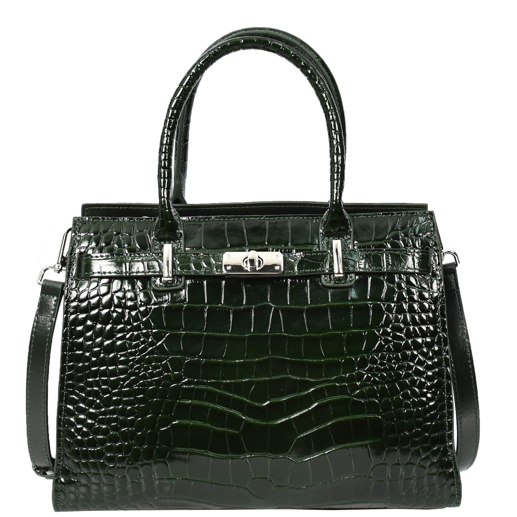 Women Real Leather Handbag Mid Size Organiser Top-Handle Handbag Noelle Green