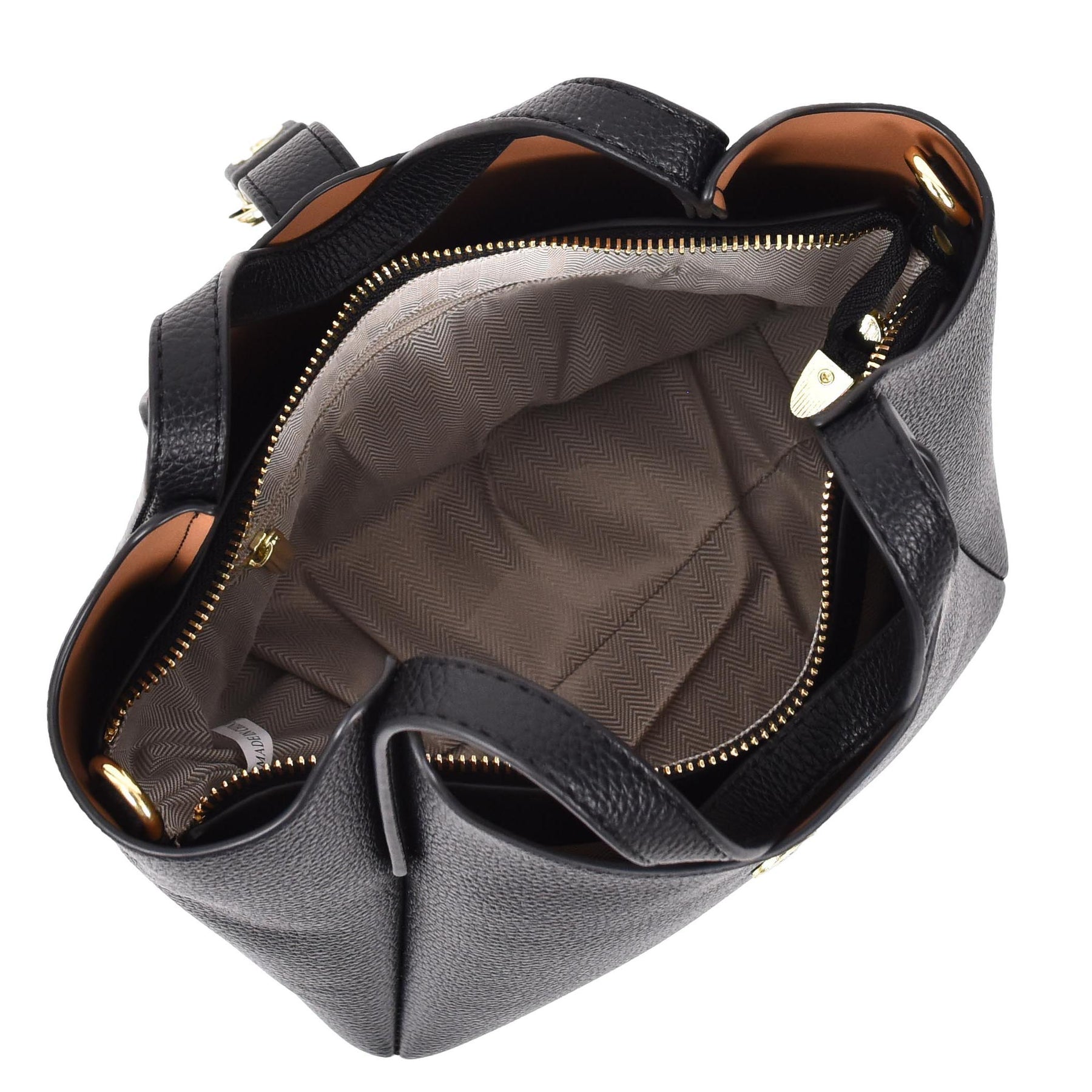Measurements - L: 27 x H: 24 x W: 14 cm. The grab handles have a drop of 17 cm. The shoulder strap extends to a maximum of 110 cm.