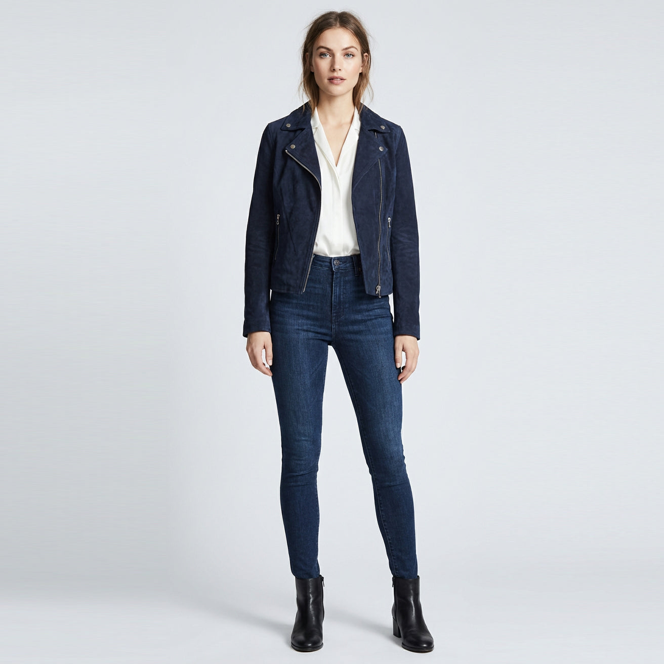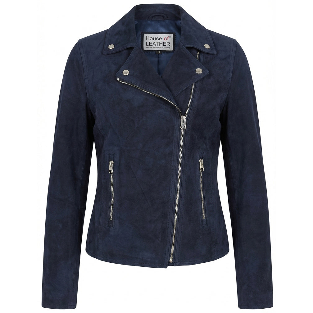 Women's Genuine Goat Suede Biker Jacket Lola Navy Blue