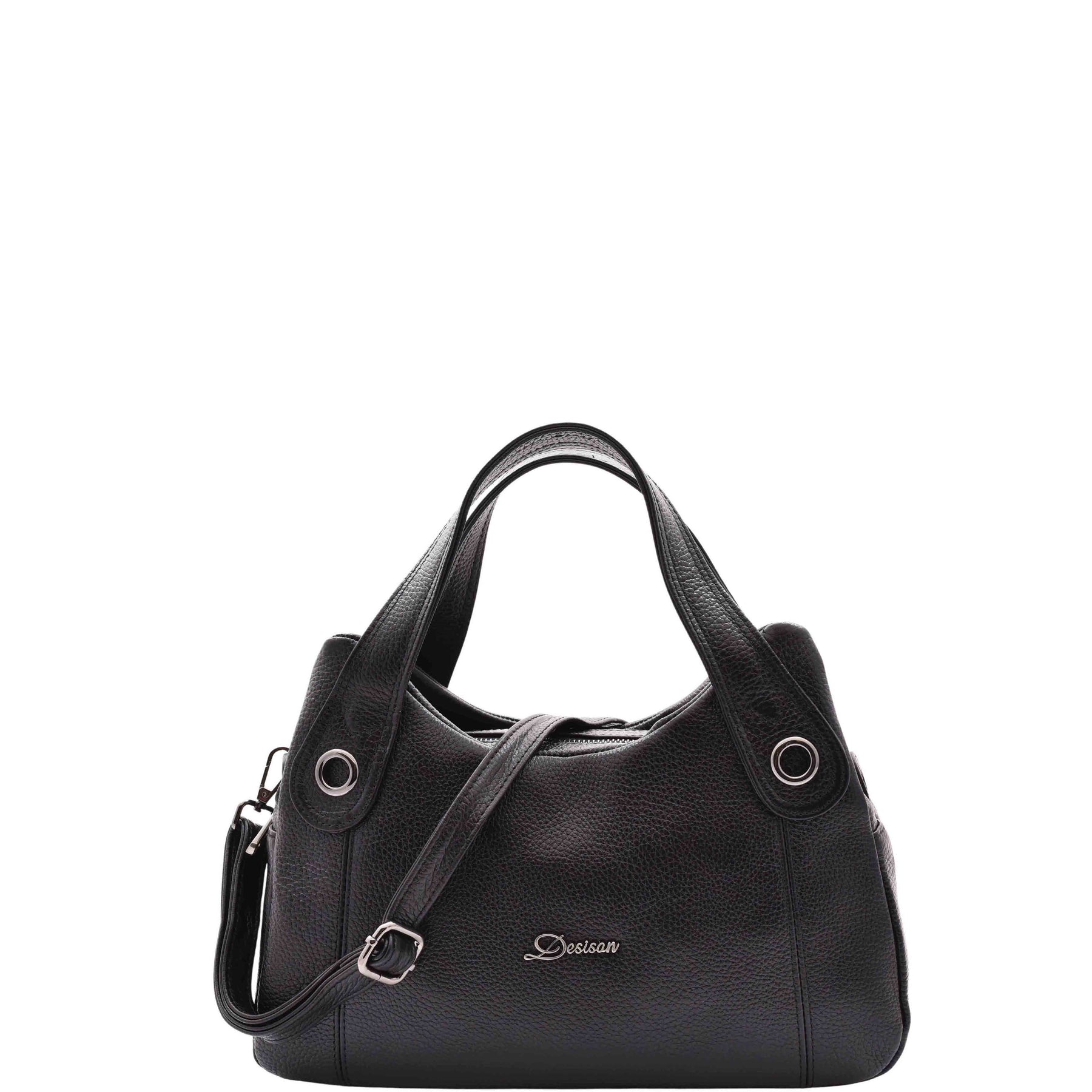 Womens Grained Leather Shoulder Bag Zip Small Size Handbag Daisy Black