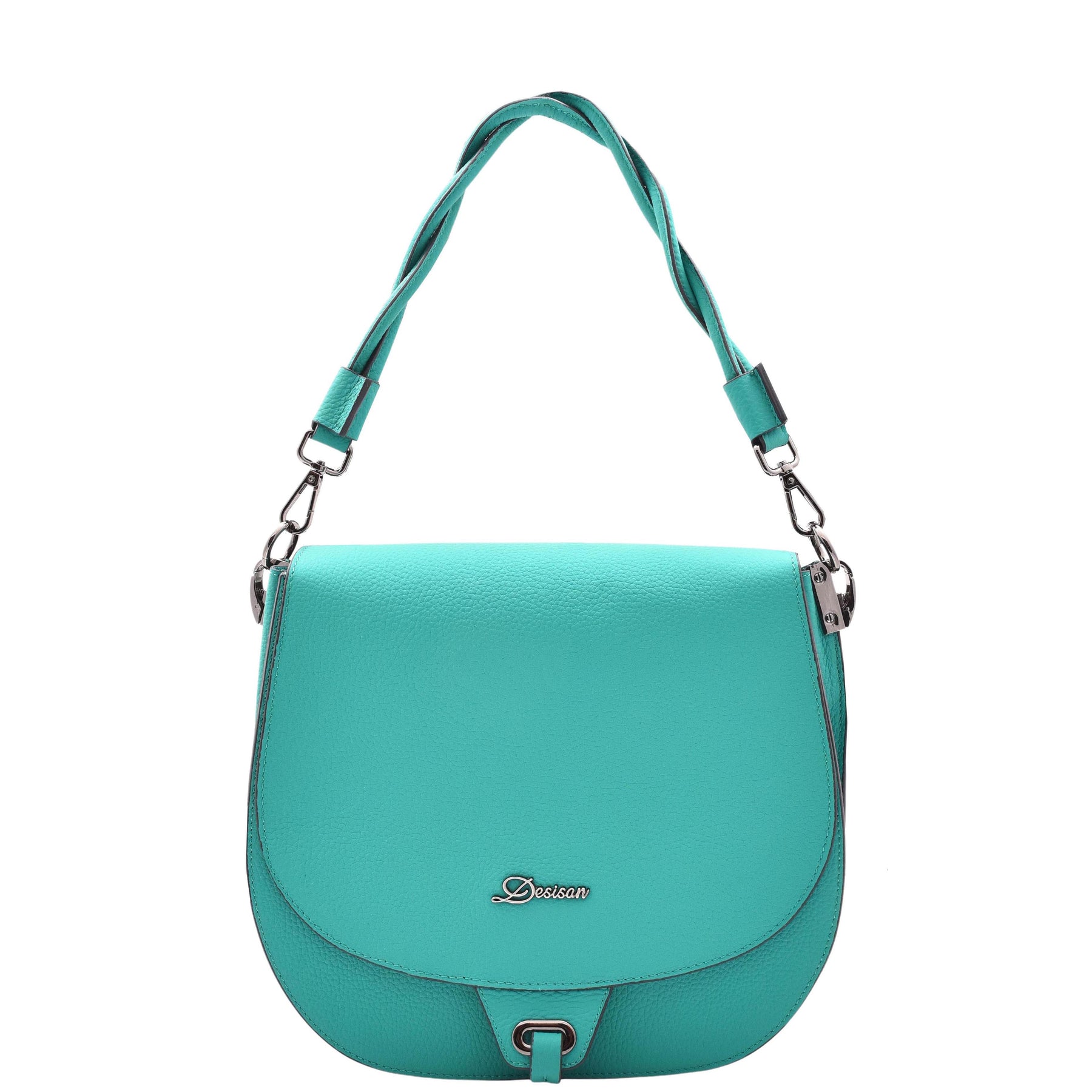 Womens Large Satchel Cross Body Leather Bag Zip Strap ALICIA Green 1